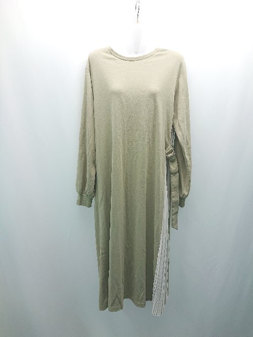 ◇ W DOT ダブルドット プリ―ツ ゆったりめ シンプル カジュアル 長袖 ロング丈 ワンピース サイズF カーキ レディース E