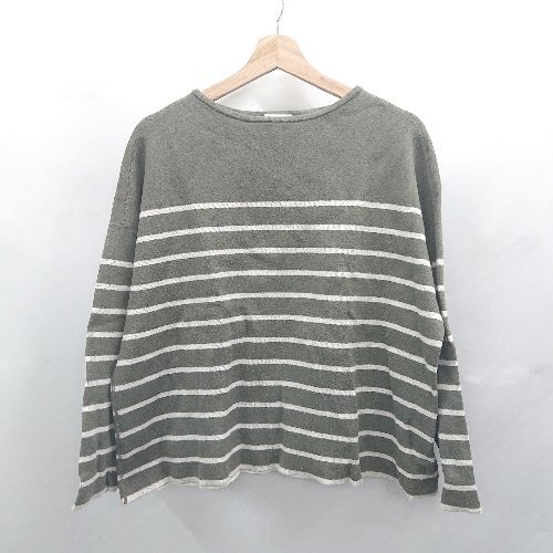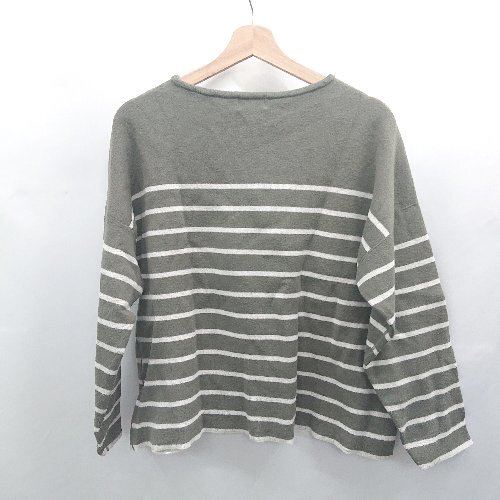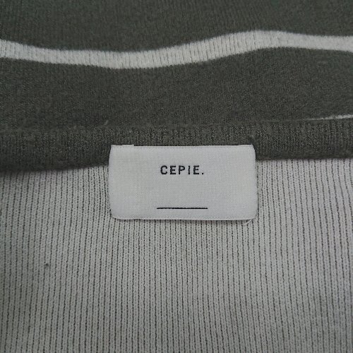 ◇ ⊇ CEPIE. セピエ ボーダー 長袖 Tシャツ カットソー サイズF カーキ ホワイト レディース E