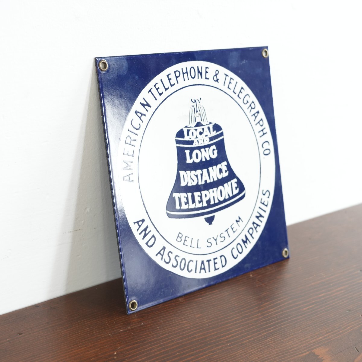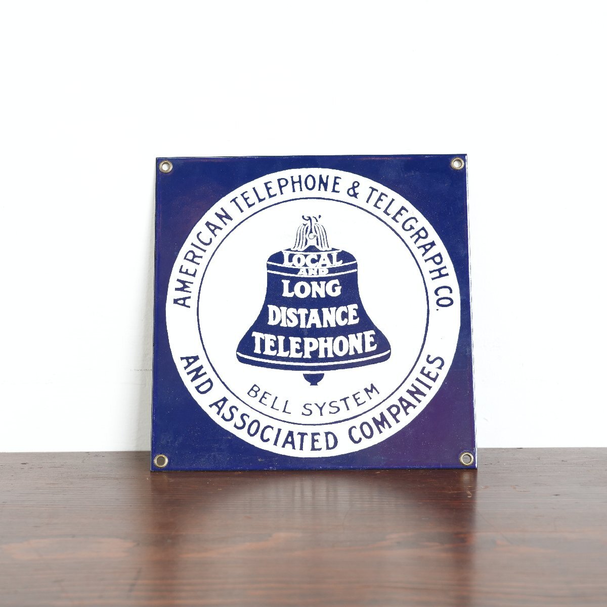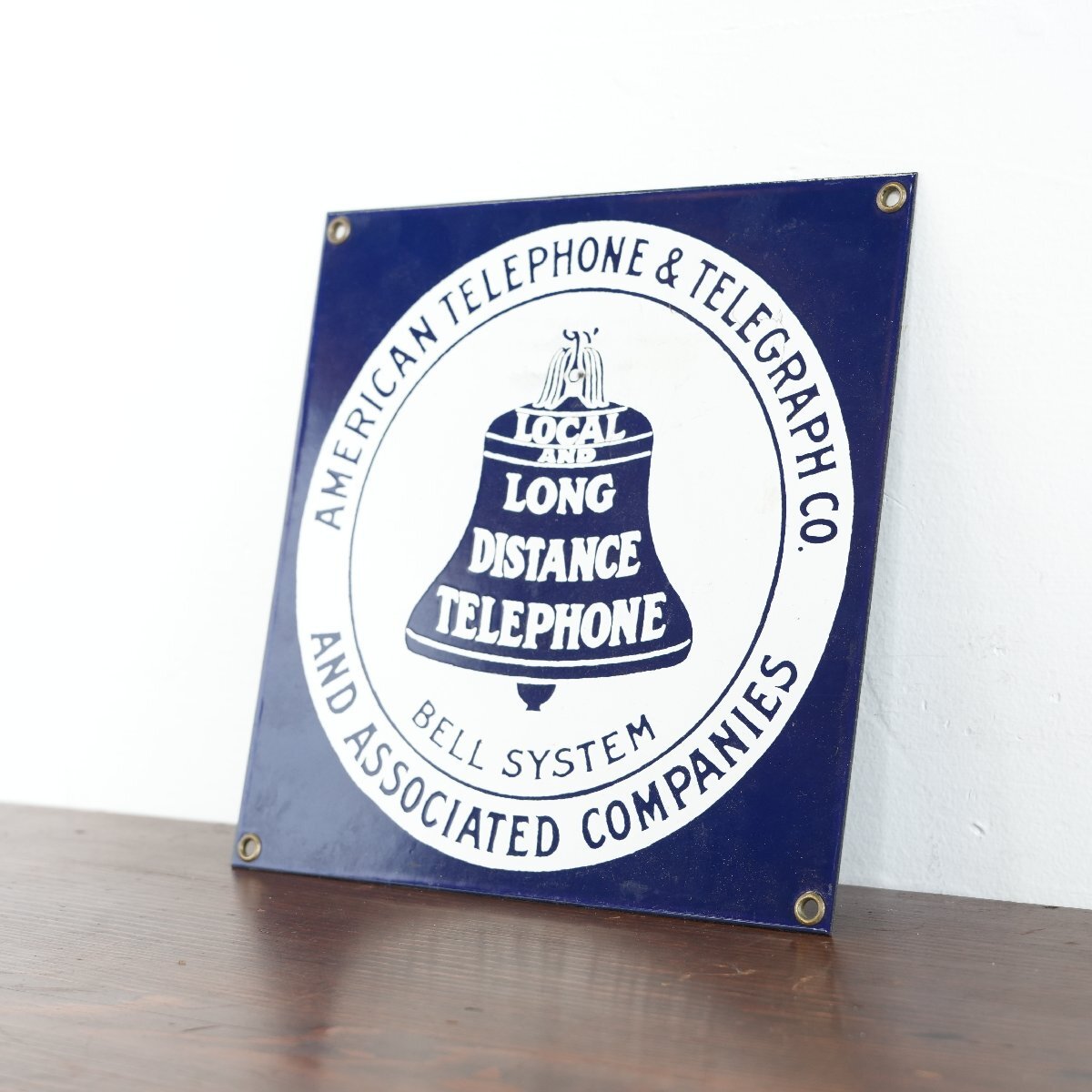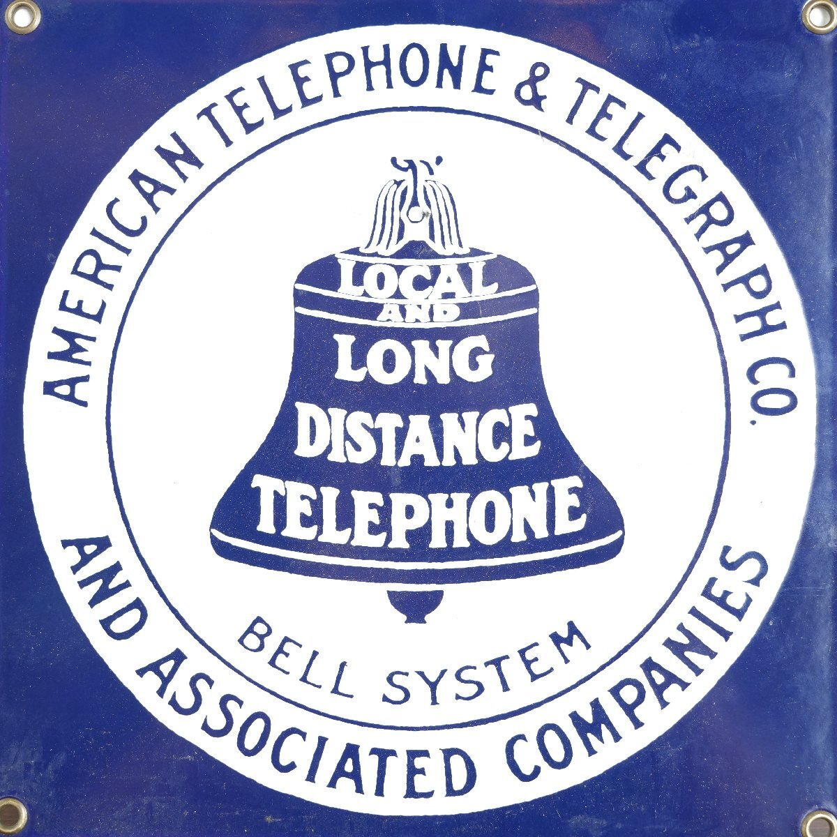 | 商品説明 explanation | アメリカの電話会社「American Telephone&Telegraph Co」の看板です。 青と白の2トーンやロゴのデザインが良い雰囲気です。 フックやビスなどで壁に飾るのもおすすめです。 ご自宅やお店のディスプレイにいかがでしょうか。 |