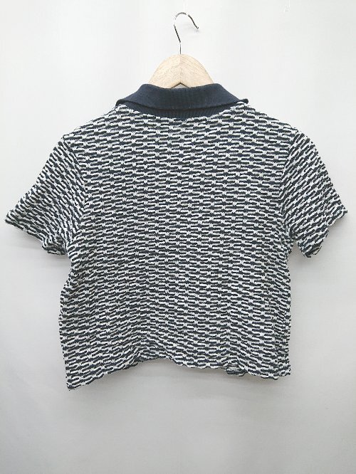 ◇ ZARA ザラ ニット ショート丈 半袖 ブラウス カットソー サイズEUR S USA S MEX 26 ネイビー ホワイト レディース P