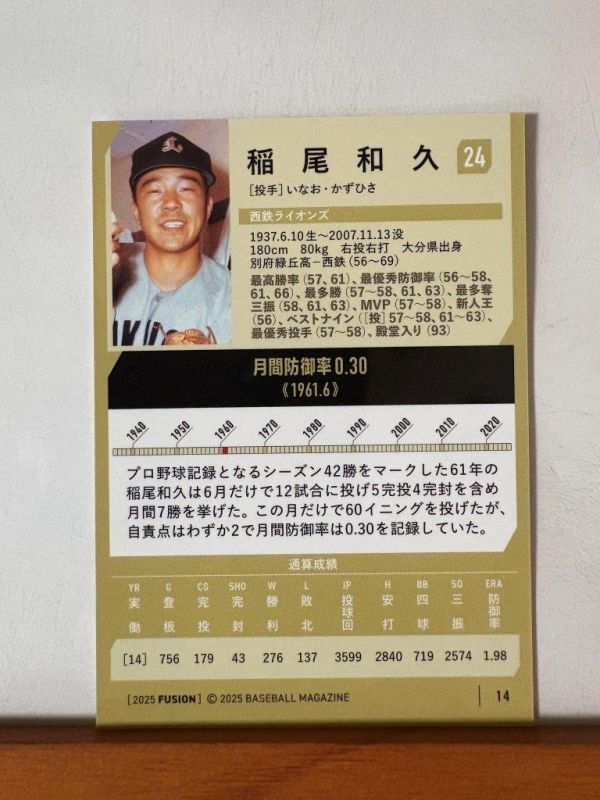 【2025 BBM FUSION】14稲尾和久(西鉄ライオンズ)レギュラーカード※キラカード版