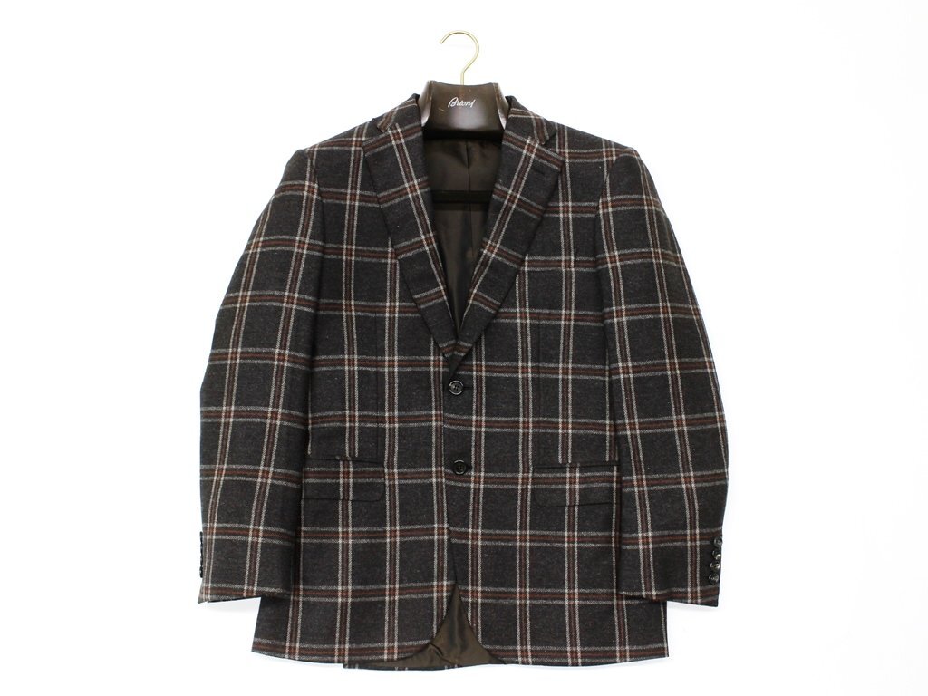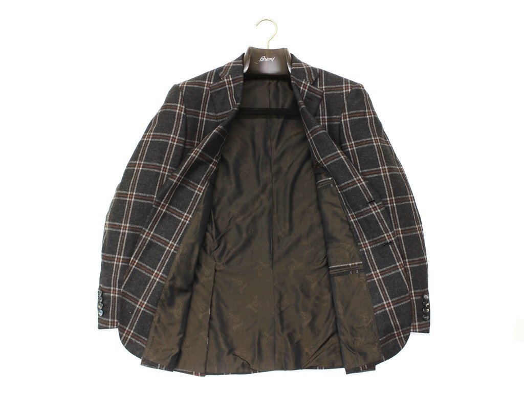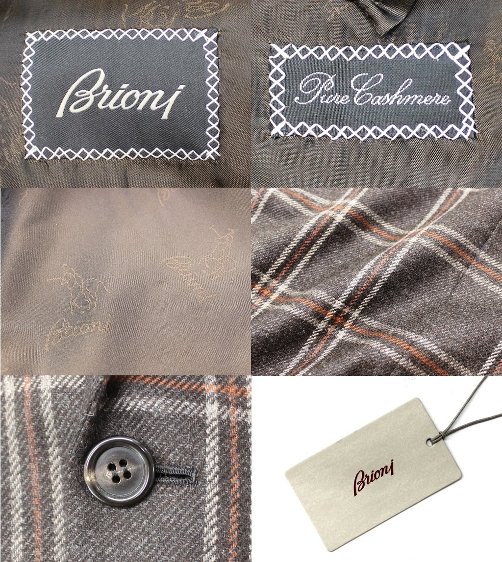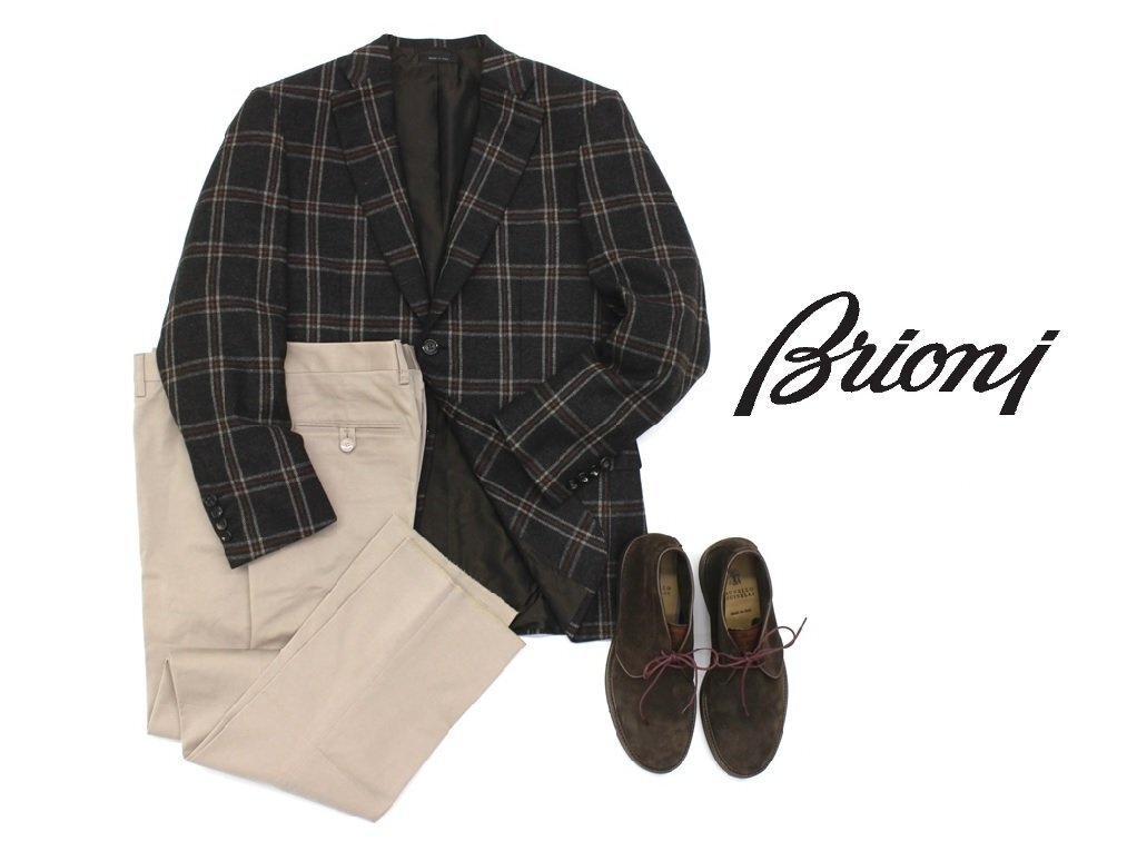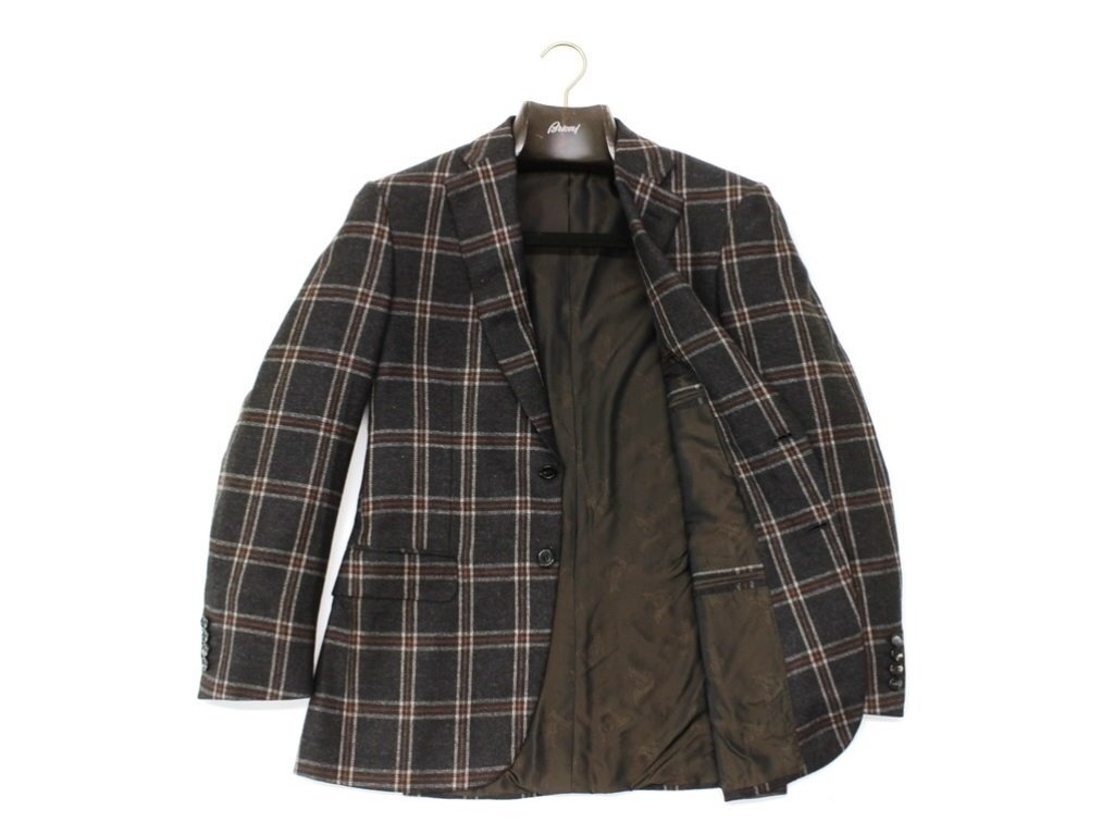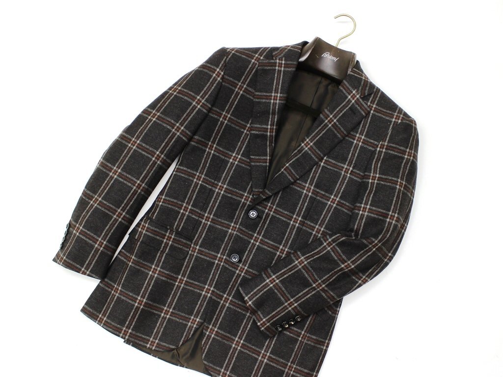 143万新品◆54=XL◆Brioniブリオーニ イタリア製 カシミヤ100% タータンチェック柄テーラードジャケット 濃茶ブラウン