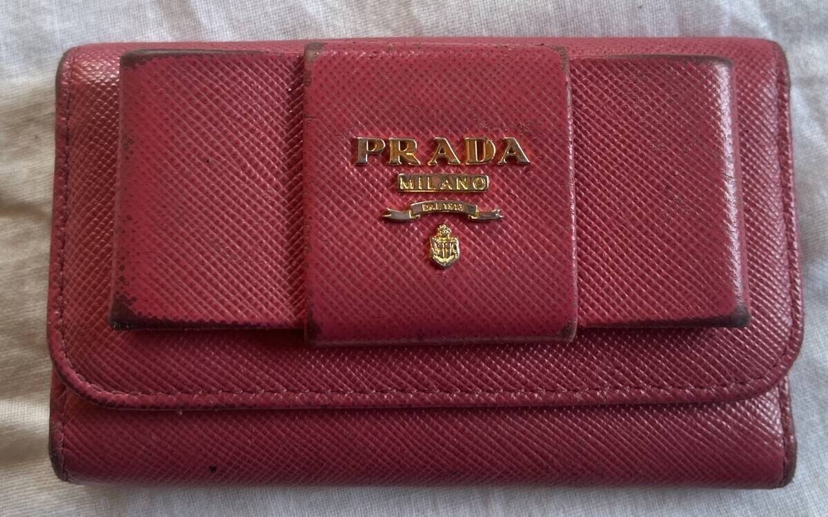 PRADA プラダ キーケース 桃色 リボン 高級タイプ