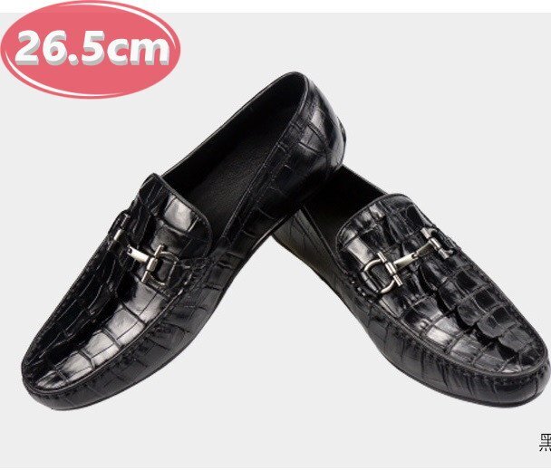 クロコダイルレザー ビジネスシューズ 最高級 ワニ革 クロコダイル 靴 メンズシューズ 革靴 ブラック 26.5cm 【n784】