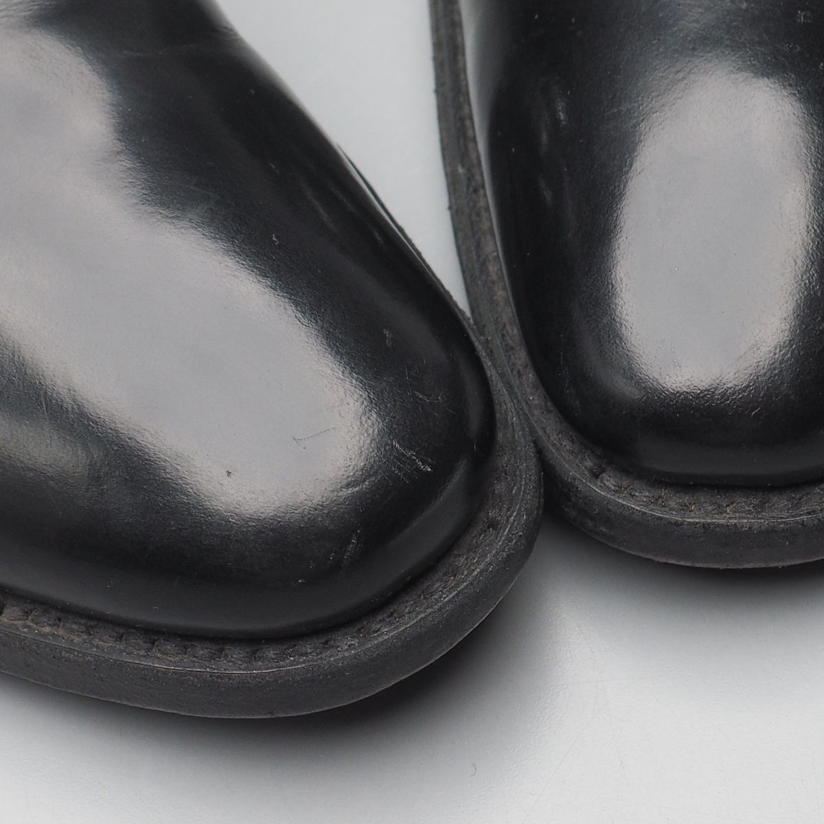 1880年から続く英国の老舗シューメーカー「ローク/Loake」の一足です。 ソックネームから察するに「next」と称されるブランドやショップなどの別注品と見られますが詳細は不明。 アッパーにはハリ・光沢のある黒のガラスレザーを使用、底付けにはグッドイヤーウェルテッド製法を採用し堅牢に形成。 オン・オフ問わずデイリーな活躍が期待される汎用性の高いアイテムです。 製法:グッドイヤーウェルテッド アウトソール:レザー トップリフト:ラバー ライニング:レザー 生産:イングランド製 ※撮影用のシューキーパーは付属致しません。 ※本物の商品ですのでご安心の上オークションをお楽しみ下さい。 ※タイトル頭の英数字は弊社の管理番号です。 ※ほかにも多数の商品を出品しています。 ※同梱に関しましては「まとめて取引」でのみ対応可能です、その他の方法での同梱対応は出来かねます。 (※商品の特性上、同梱対応出来ない商品もございますので予めご了承下さい。) |