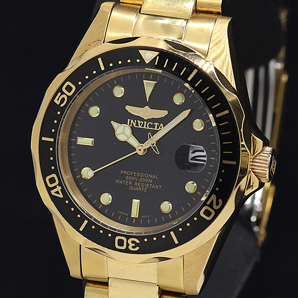 1円 稼働 良品 インビクタ QZ ダイバーコレクション プロフェッショナル200M デイト 黒文字盤 メンズ腕時計 0022000 11JWT IKE