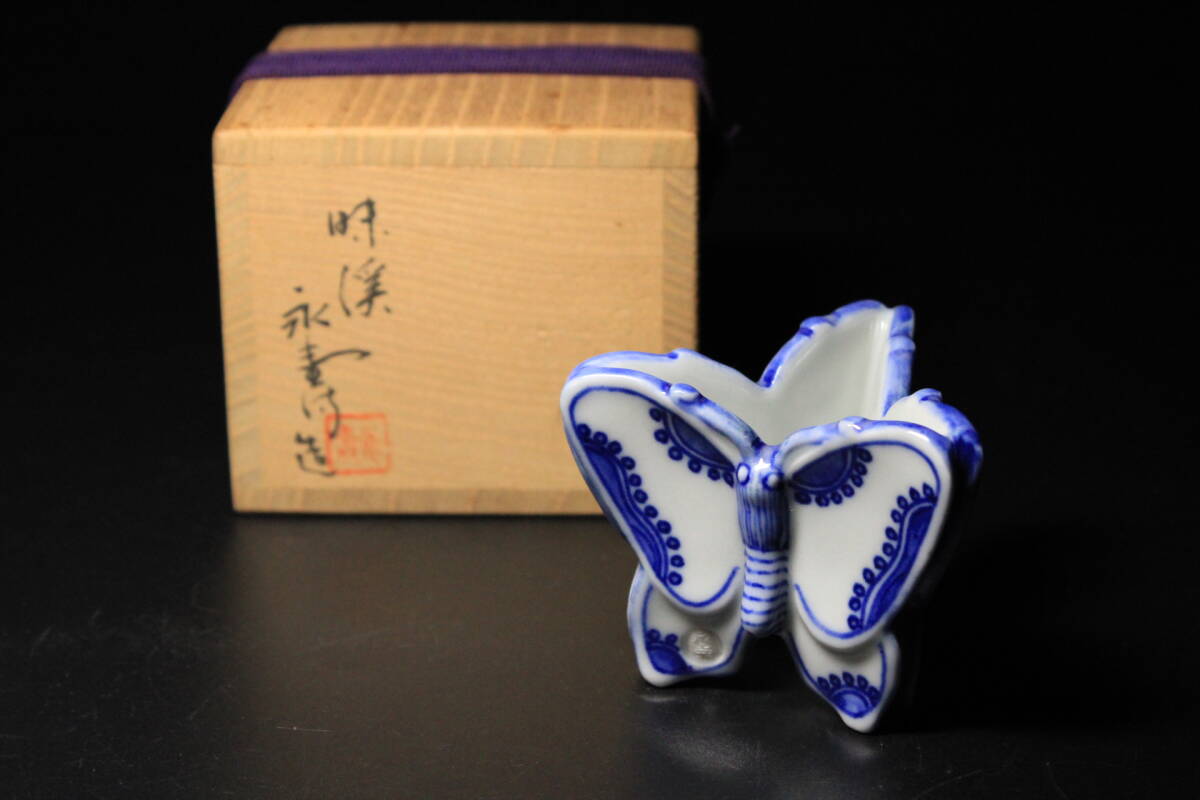 | ■□ 矢口永寿 昧渓 染付蝶合わせ蓋置 □■ | |