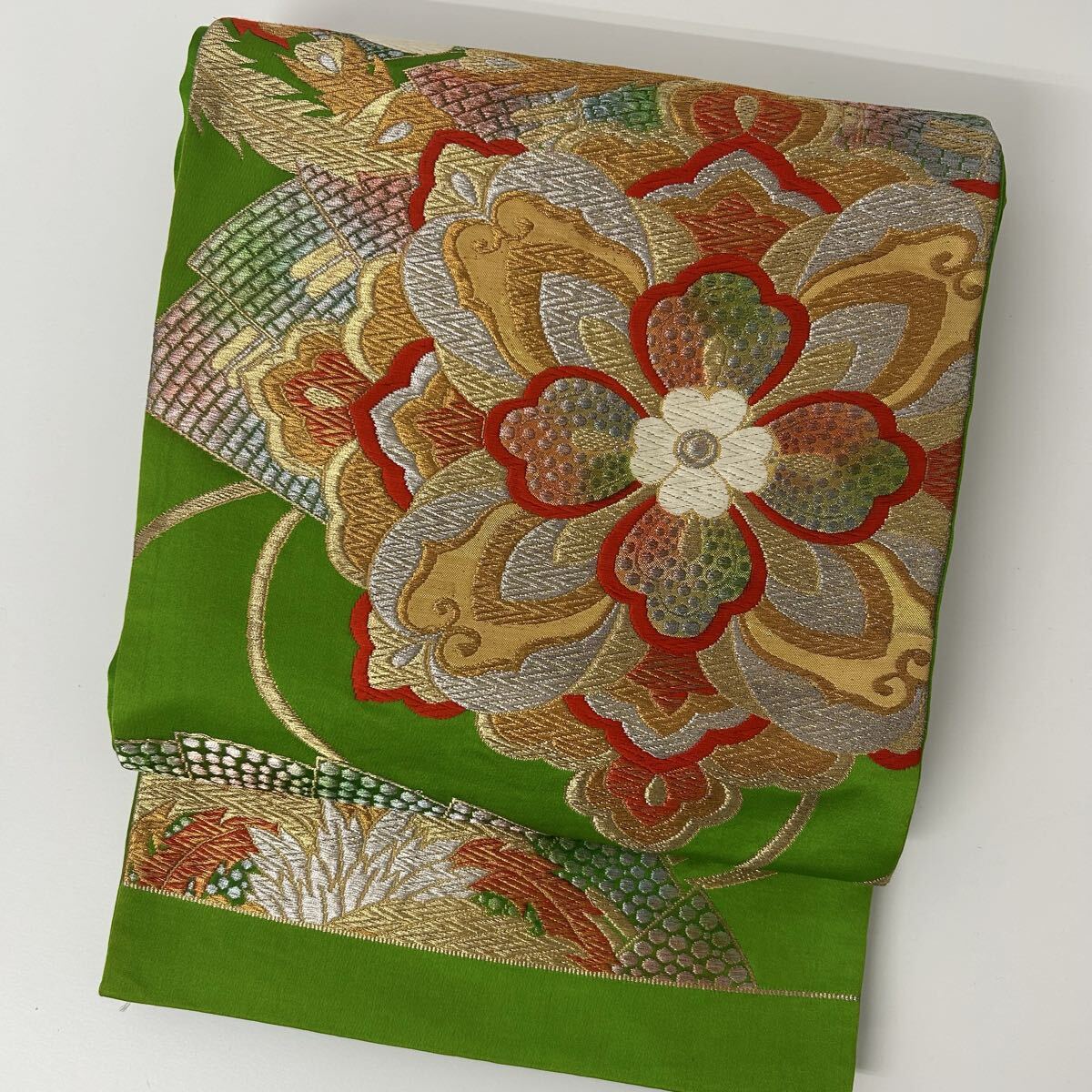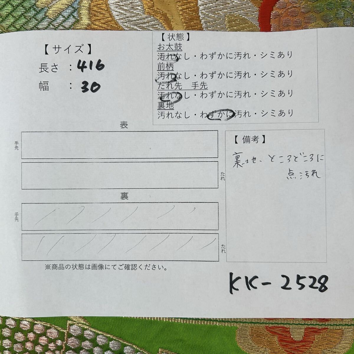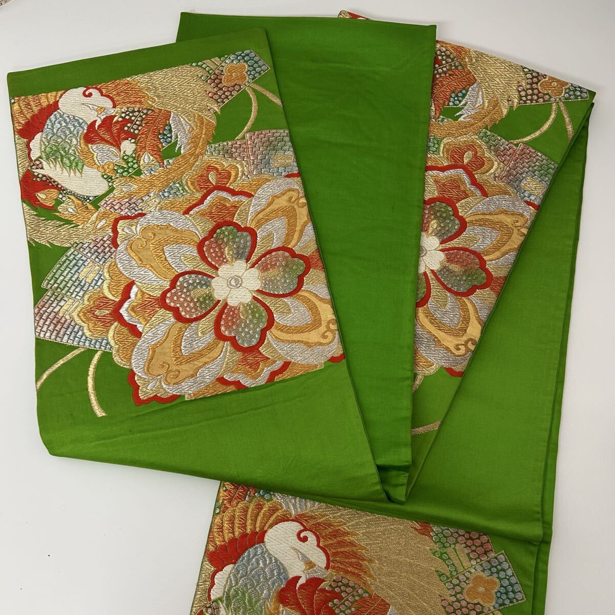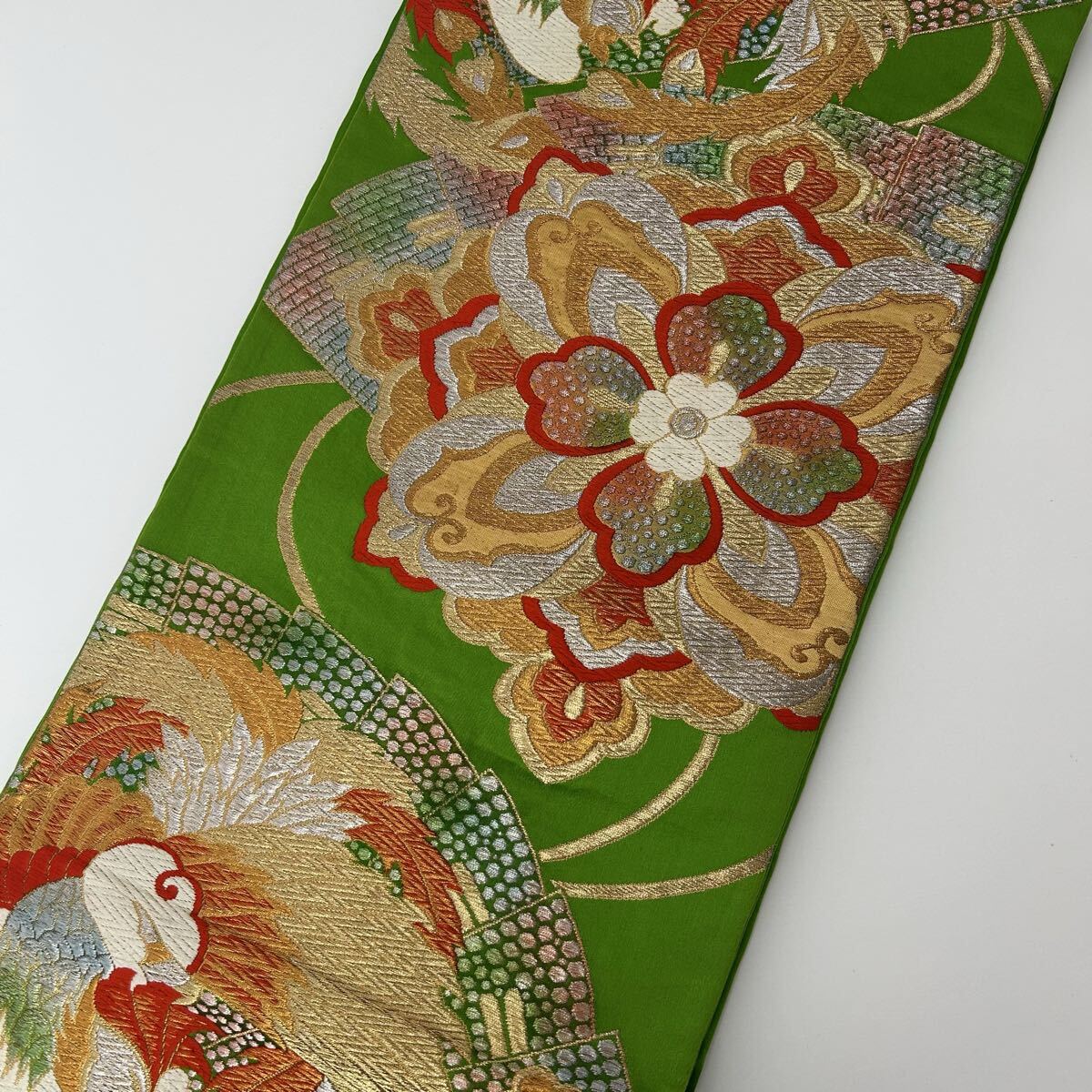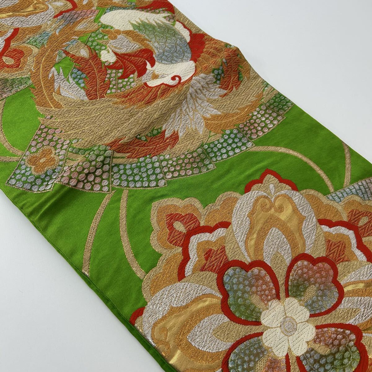 【楓】袋帯 セミアンティーク 正絹 大胆な華文 鳳凰 六通 KK-2528