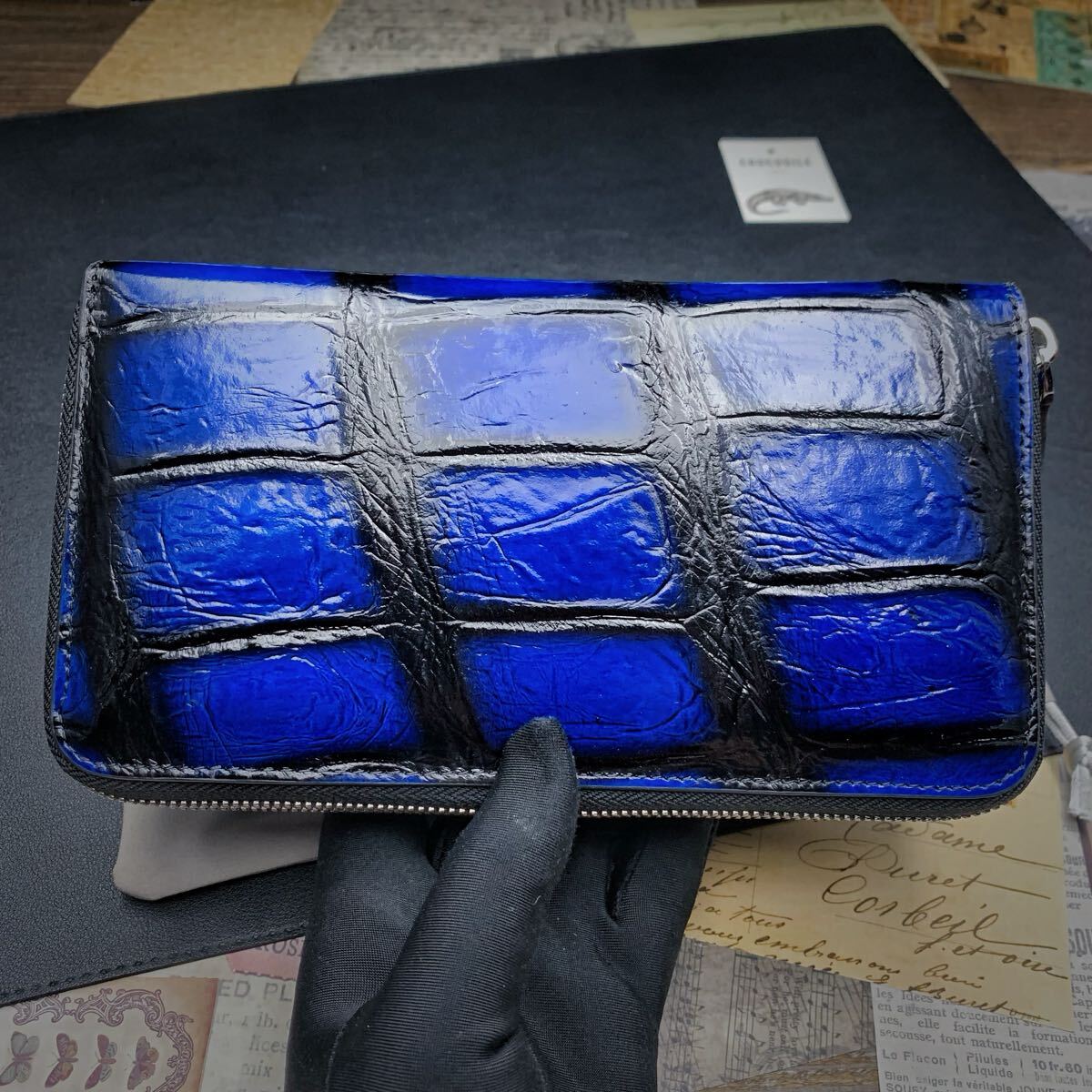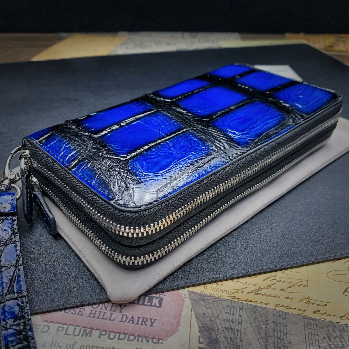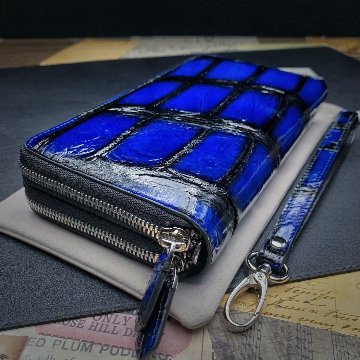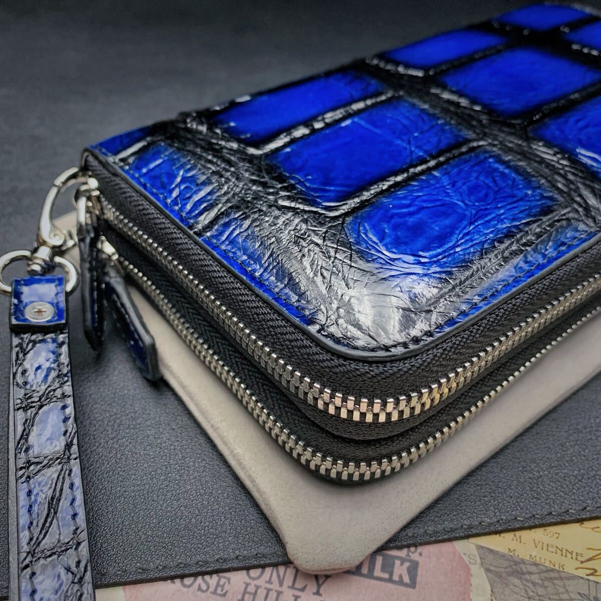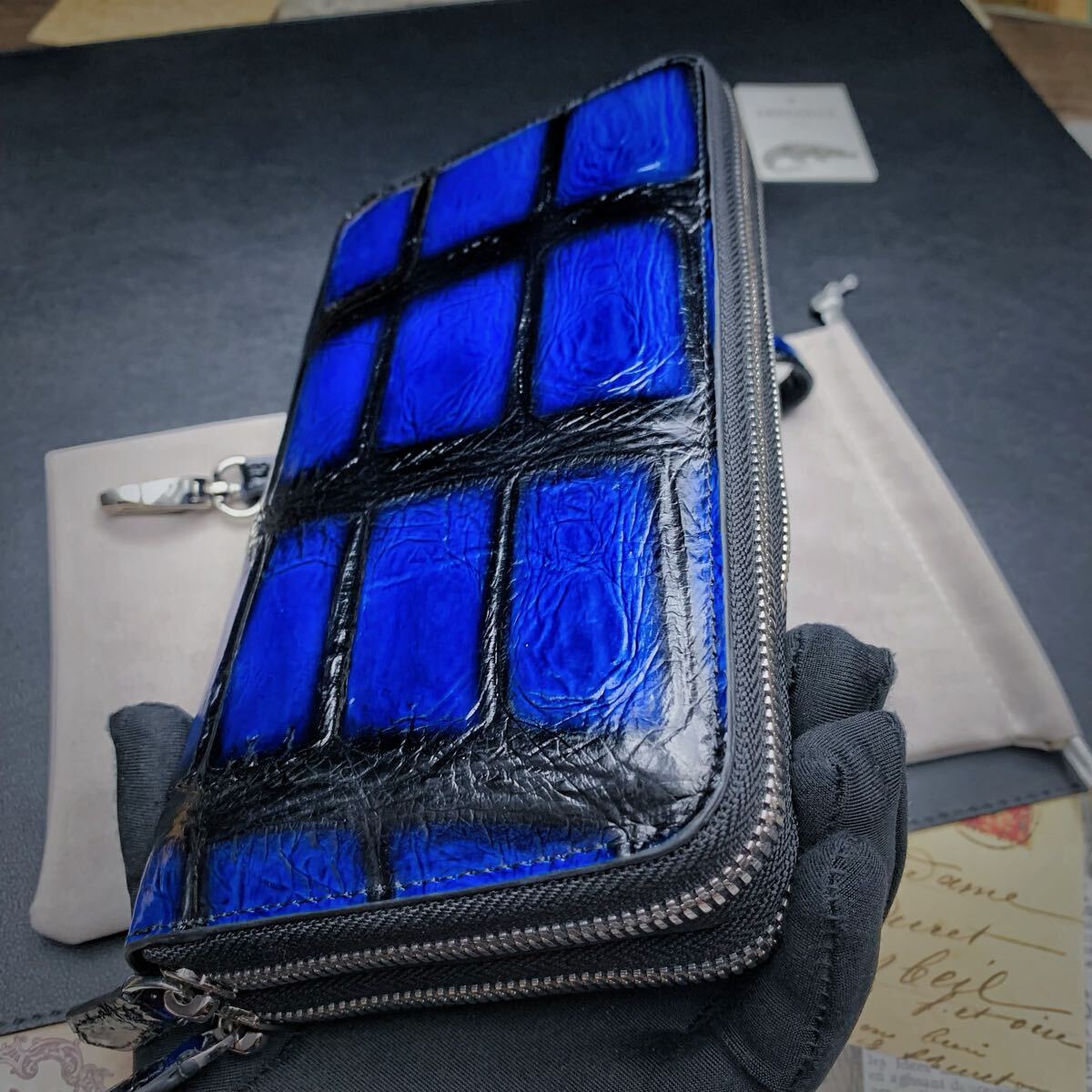 【実物撮影】新品 クロコダイル メンズ 長財布 ラウンドファスナー 未使用 腹革 ワニ 希少手染め色 ダブルファスナー 長財布