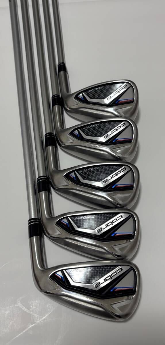 Cobra Aerojetアイアンセット、シルバー仕上げ、5本セット(6, 7, 8, 9, P)。 - ブランド: Cobra - モデル名: Aerojet - アイアンの種類: アイアンセット One Lengthではありません。 - 番手: 6, 7, 8, 9, P - デザイン: シルバー仕上げ、黒と青のアクセント - シャフト: MCI 60S(リシャフト品) ‐ グリップ: ゴルフプライド TourVelvet Plus4 ご覧いただきありがとうございます。 硬さ...SR(M-40/S-2) 利き腕...右 セット本数...5本 硬さ...S(M-43/S-1)
