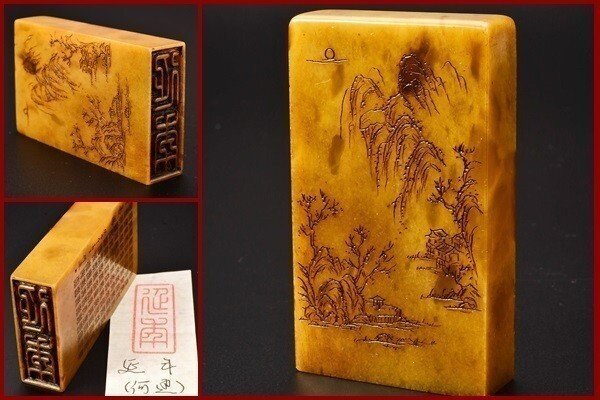 U04311 寿山石 彫刻 印鑑 中国古美術 書道道具 文房具 唐物 古玩 /KN