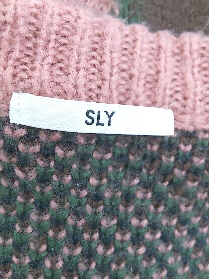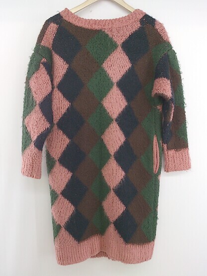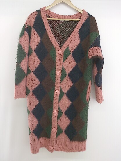 ◇ SLY スライ ダイヤ柄 ロング丈 長袖 ニット カーディガン サイズF ピンク ネイビー ブラウン系 レディース E