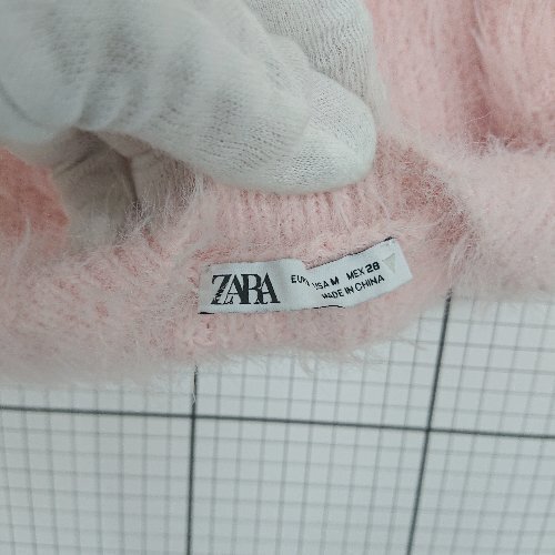 ◇ ⊇ ZARA ザラ 可愛い系 長袖 フェイクファーニットセーター サイズM ピンク系 レディース E