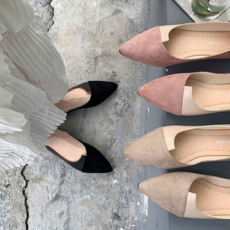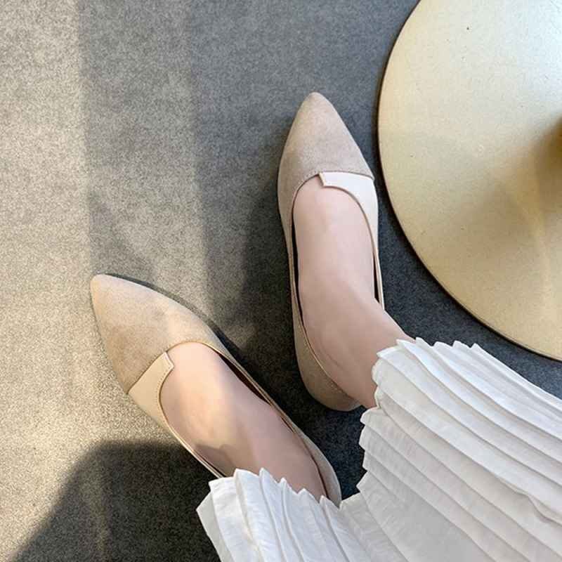 パンプス ぺたんこ レディース 配色靴 美脚 23.0cm(36) ブラック