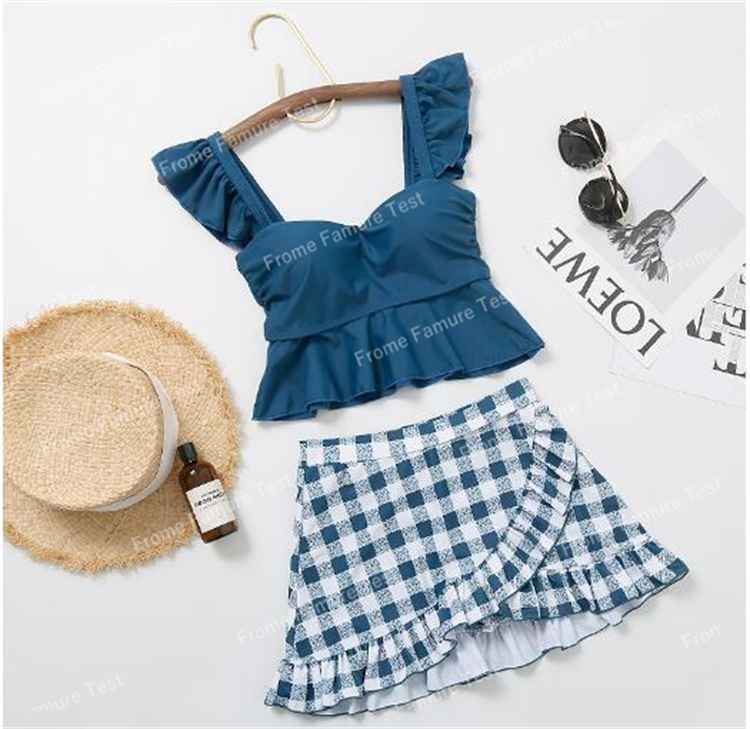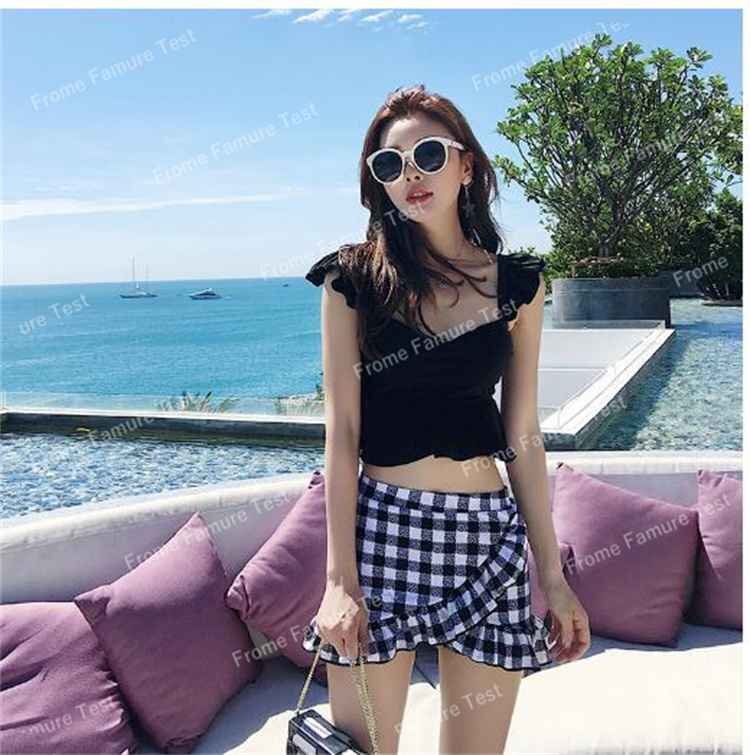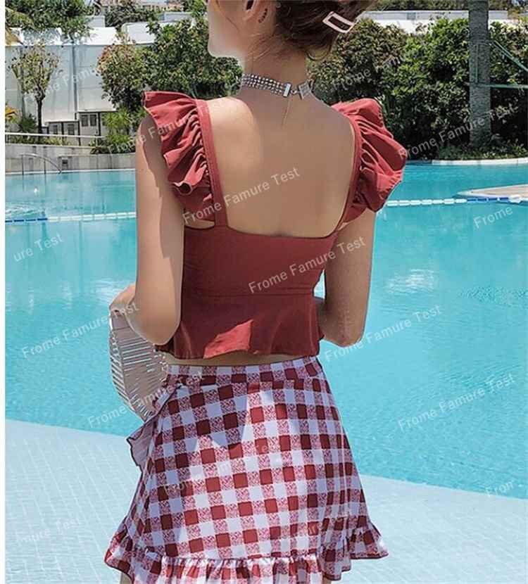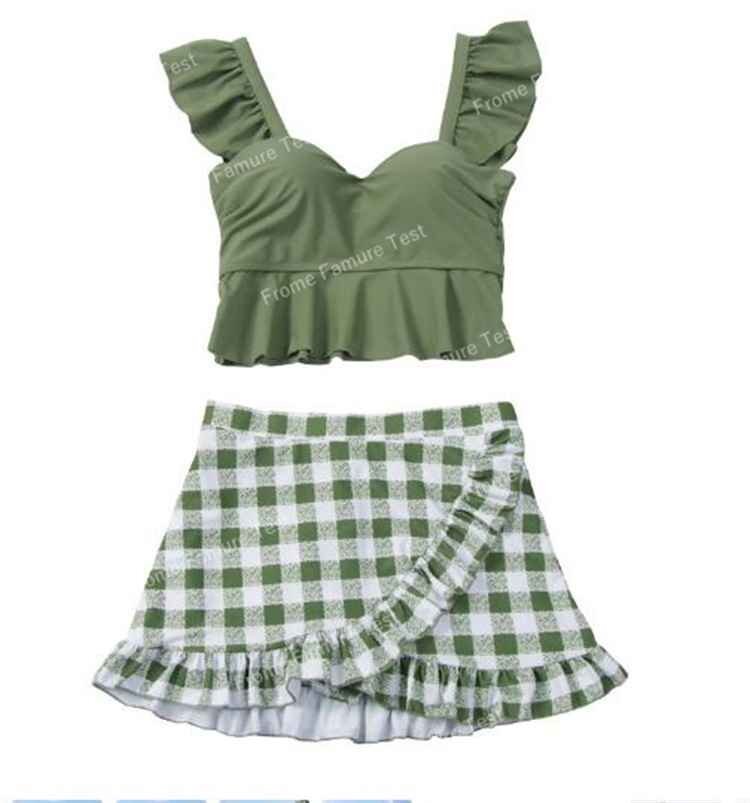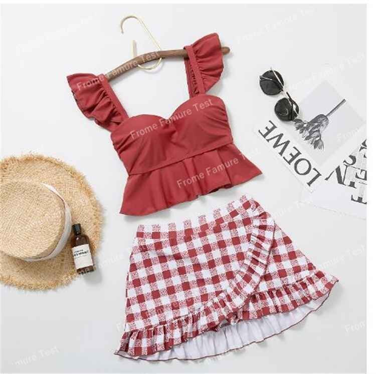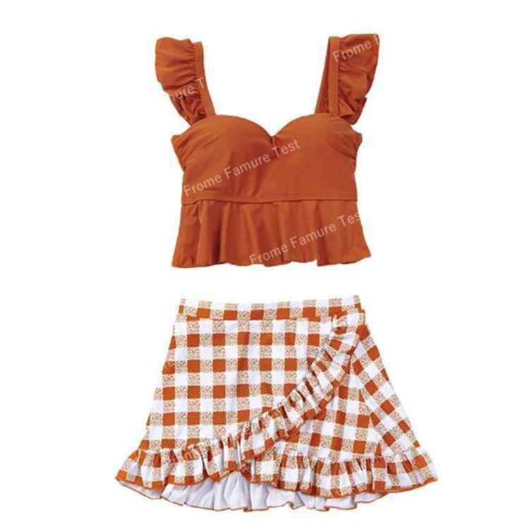 スカート水着 上下セット チェック柄 ギンガムチェック 韓国風 海水浴 海水着 M オレンジ