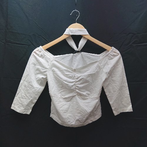 ◇ EMODA エモダ オフショルダー チョーカー付き 七分丈 カットソー サイズF ホワイト レディース E