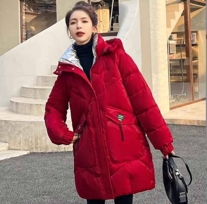 冬新作 ミドル丈 綿の服 レディース暖かい コート ダウンジャケット 厚いコート 大きいサイズあり L レッド