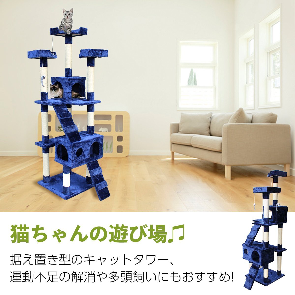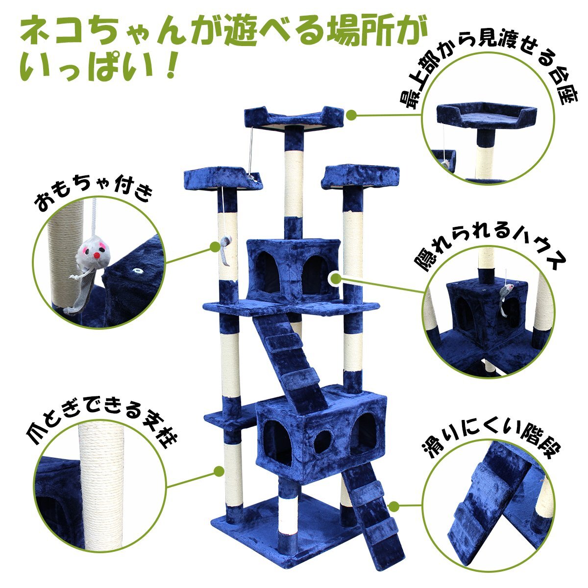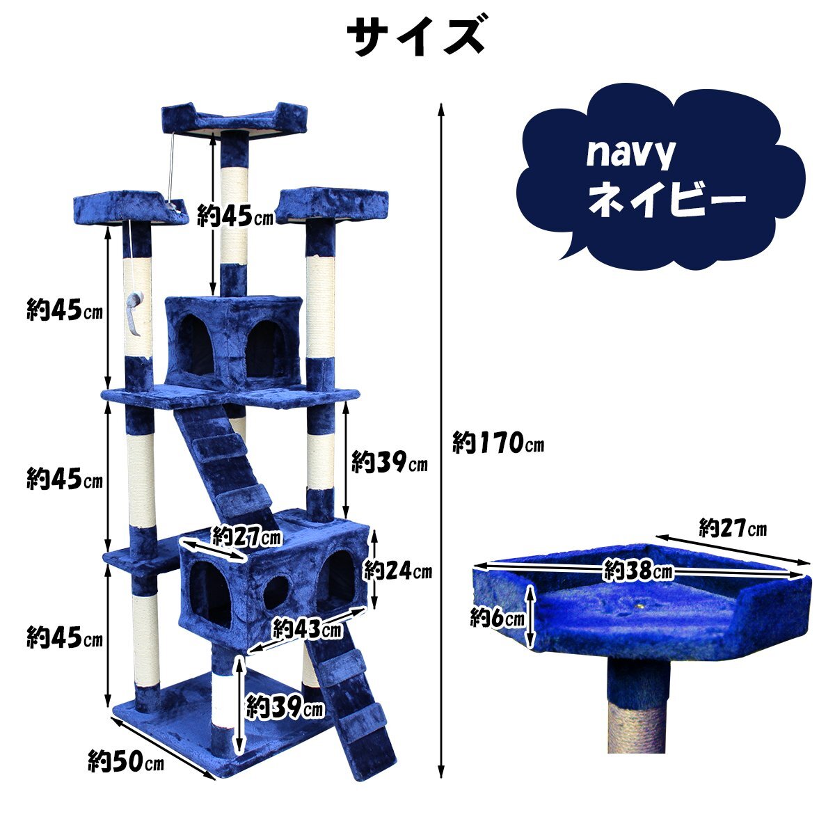 【送料無料】高さ170cm キャット タワー ネイビー ネコ ハウス 据え置き 爪とぎ 遊び場 隠れ家 置き型 猫 家 ビックサイズ