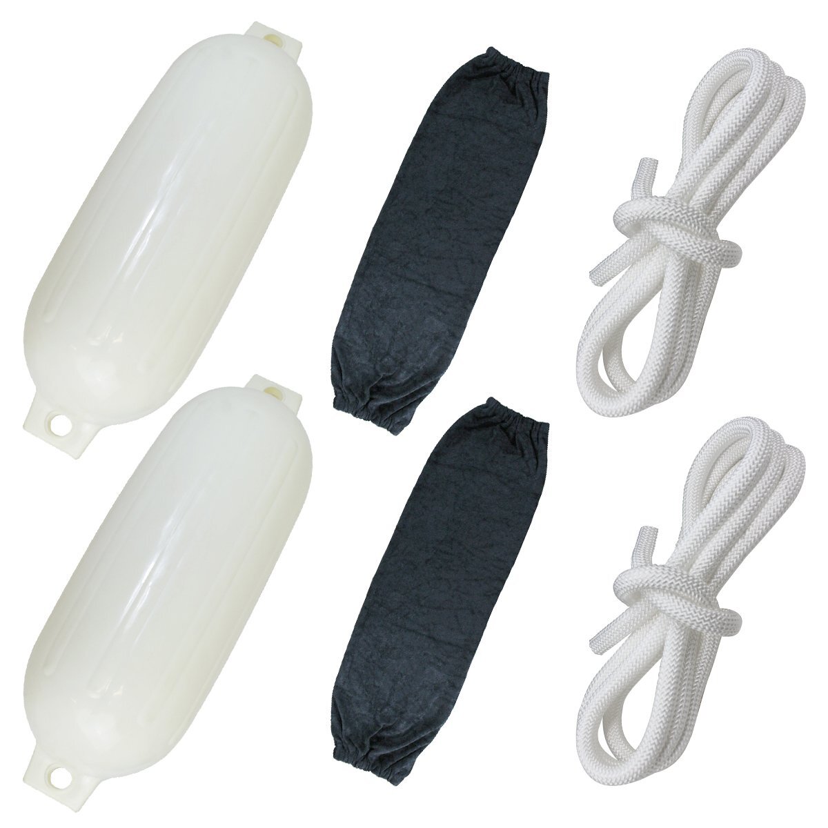 『3種×2セット』ボートフェンダー 680×240mm&黒カバー&ロープ 白 2m 船 浮き ブイ フロート 係留ロープ