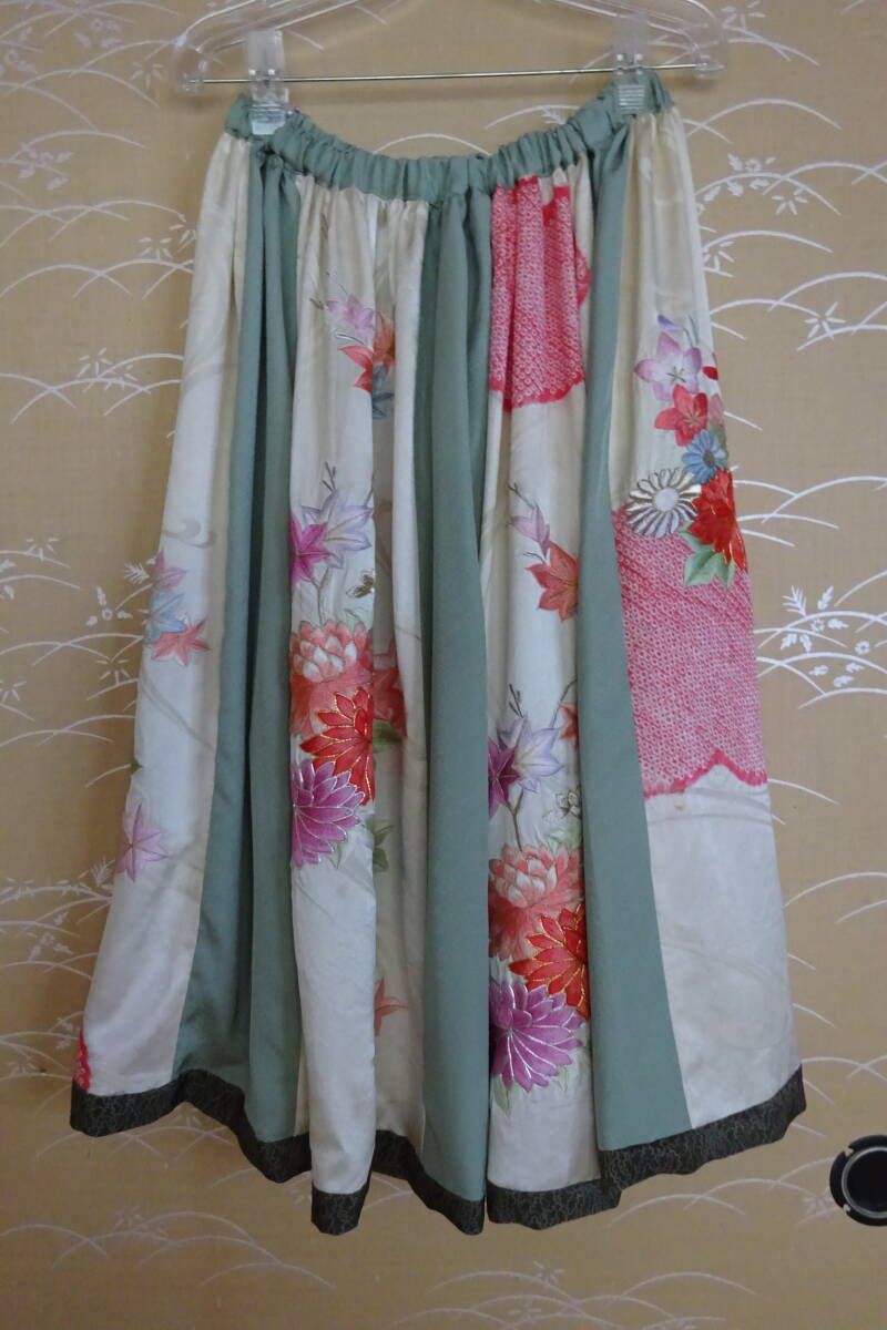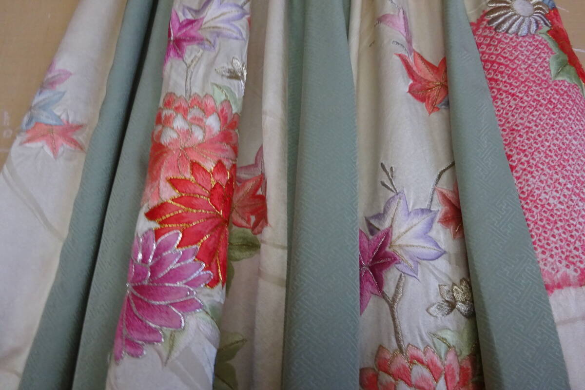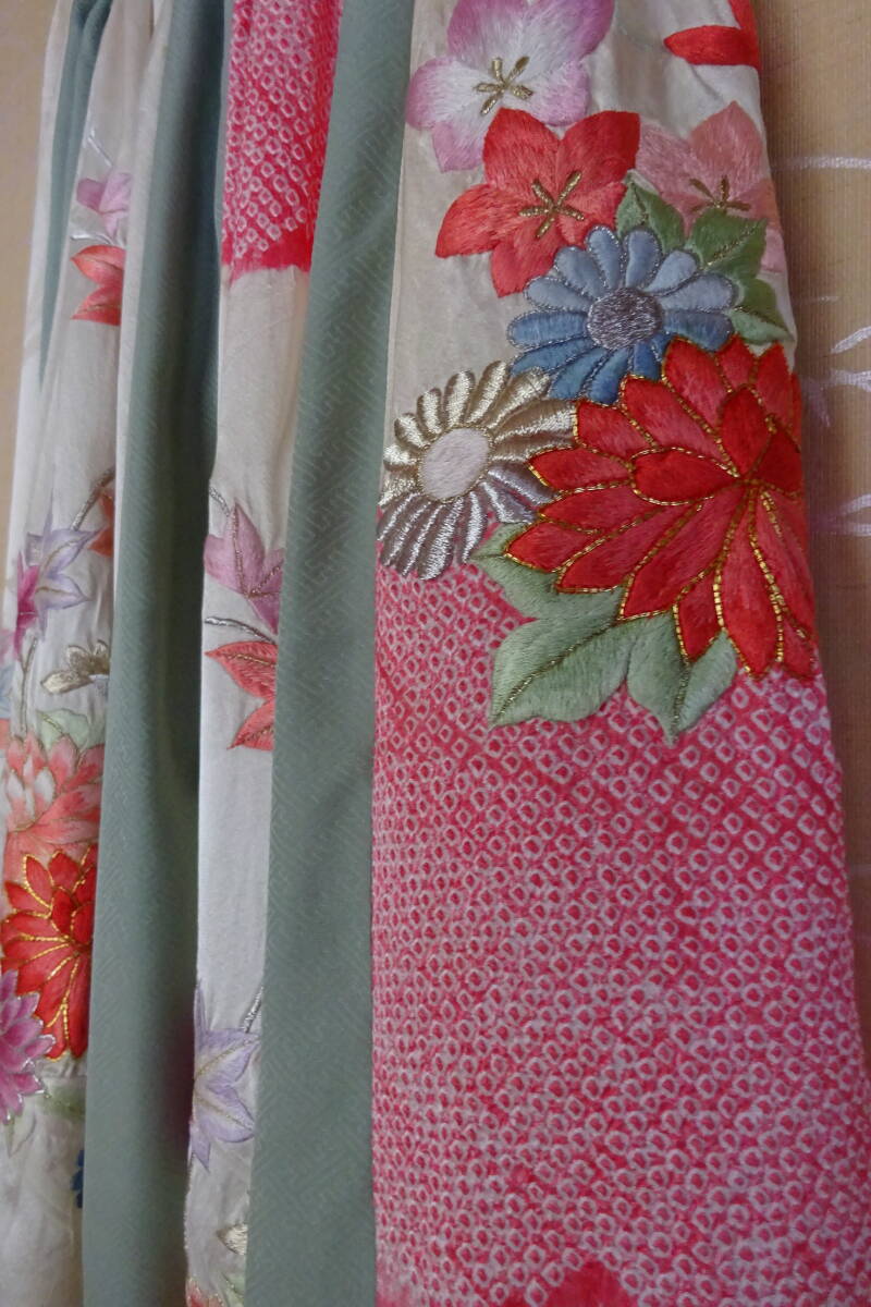 着物でリメイク 訪問着より(刺しゅう・絞り)ギャザーたっぷりスカート