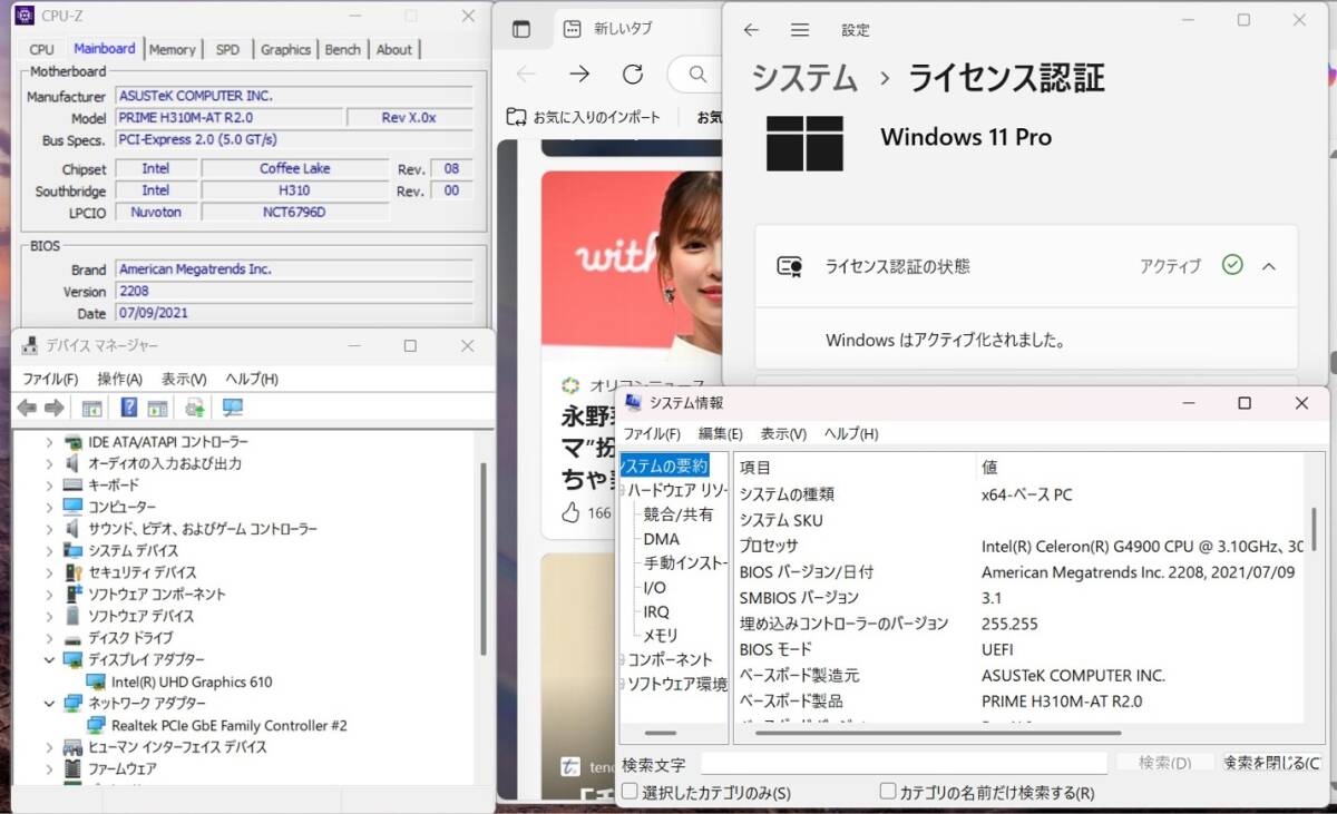 上記の動作確認環境の構成でWindows11Pro(64bit)をインストールし動作確認(インターネット接続等)