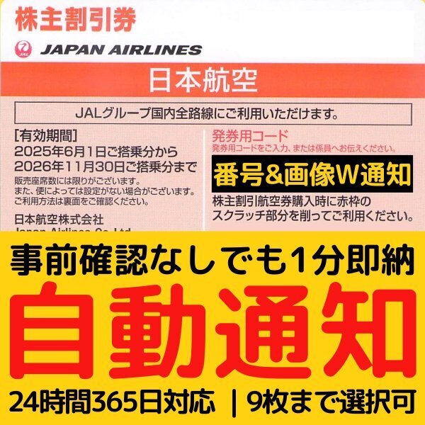 1分で自動通知 24時間対応 コード&画像W通知 JAL 株主優待券 1枚〜9枚 26年11月末 発送不可 2枚3枚4枚5枚6枚7枚8枚 日本航空 JL6B