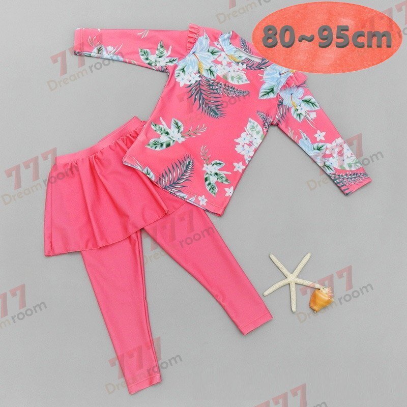 ラッシュガード 水着 上下セットアップ ピンク【M】80-95cm 子供服 女の子 レギンス 長袖 ズボン 日よけ ビキニ 海 プール swi-108