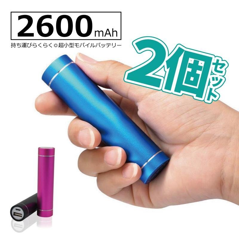 【2個セット:カラーランダム】モバイルバッテリー 2600mAh 超小型 軽量 スマホ充電器 充電 携帯充電器 iPhone/Android対応 PSE認証済 A61