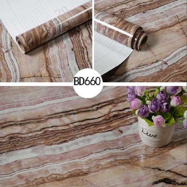 【 3m 】 大理石模様 アンティーク ブラウン系 B09 壁紙 シール 61cm幅 DIY 防水 カッティングシート クロス 糊付き ウォールペーパー