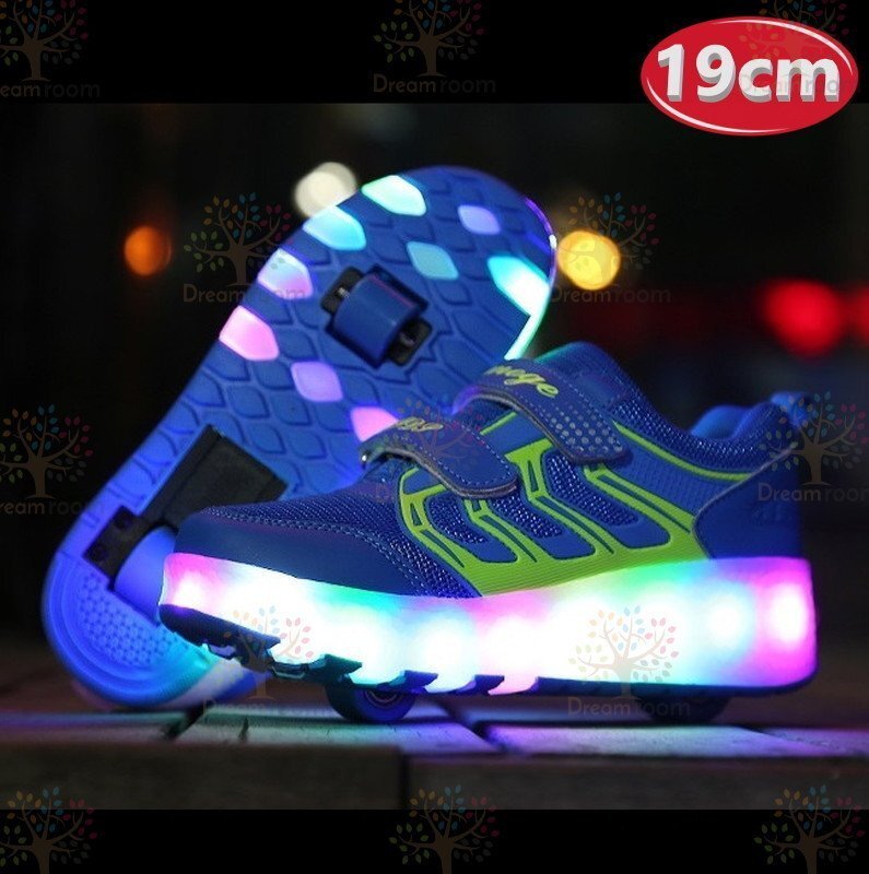 光る☆LED ライトアップスニーカー&ローラーシューズ 一体型 【K-373ブルー 19cm】夜間 スケート靴 反射材 ジョギング 自転車