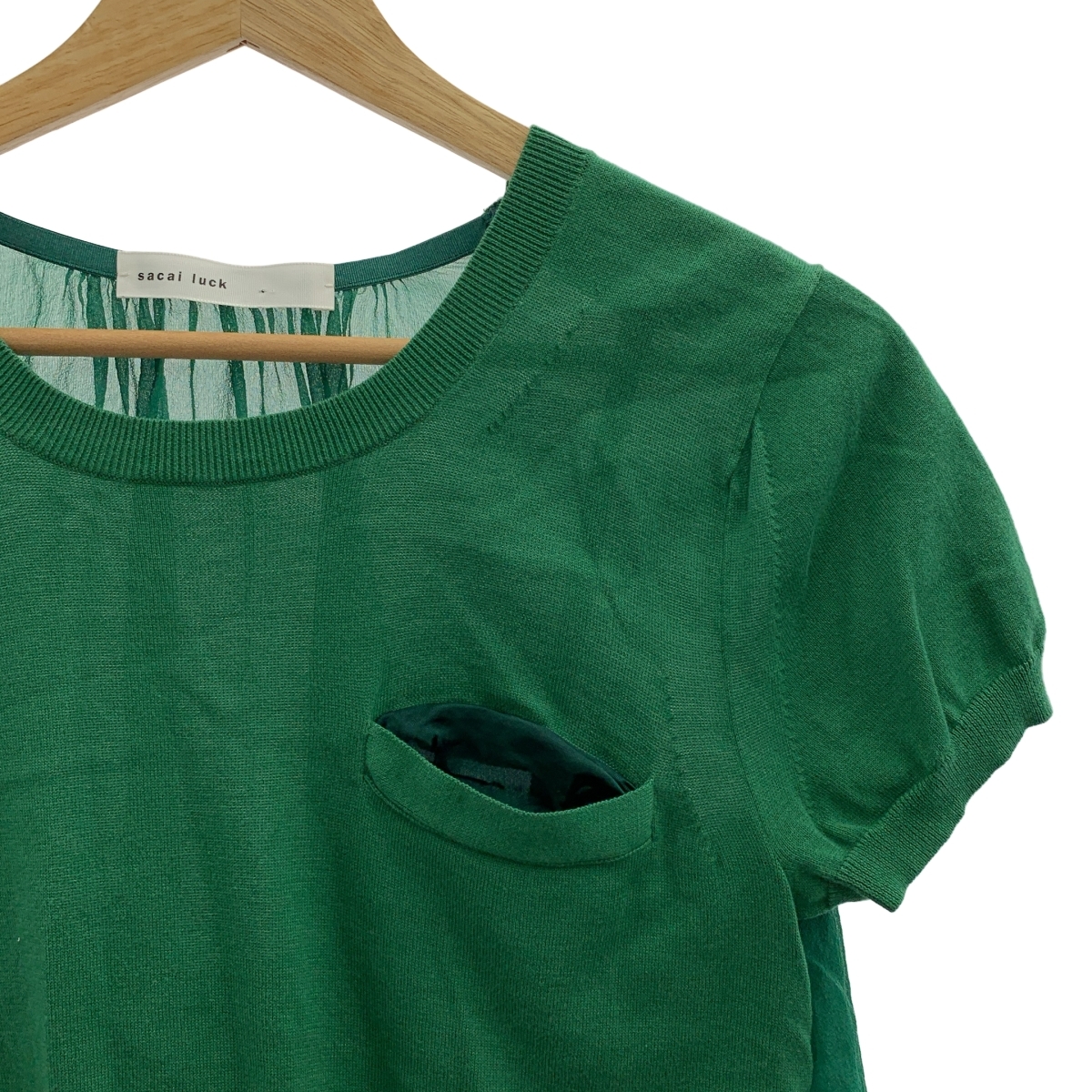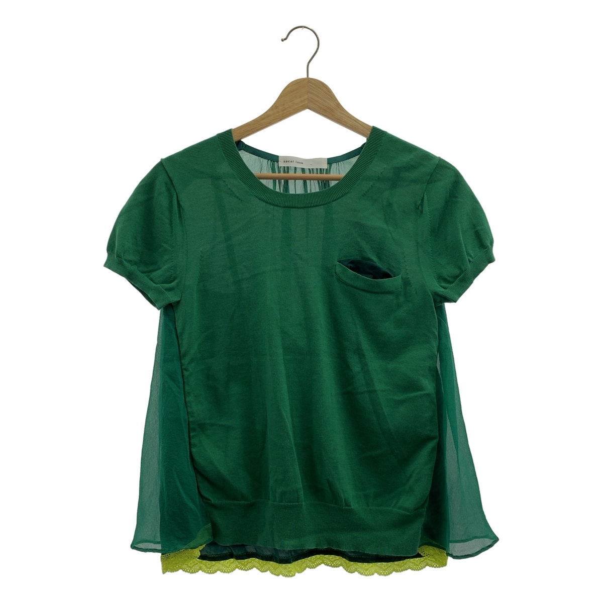 sacai luck / サカイラック バックシフォン切替 レース レイヤード 半袖ニット
