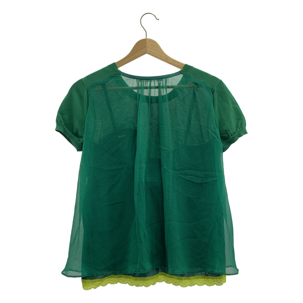 sacai luck / サカイラック | バックシフォン切替 レース レイヤード 半袖ニット | 3 | グリーン | レディース