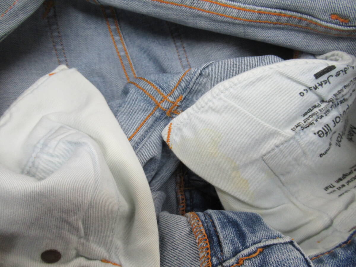 程度:全体的にお洗濯や着用に伴う色褪せ、色落ち、変色など見らえ、擦れ、シワ、ヨレもございます。