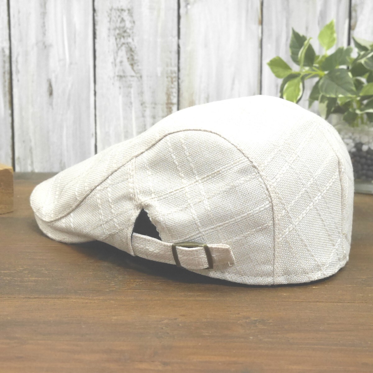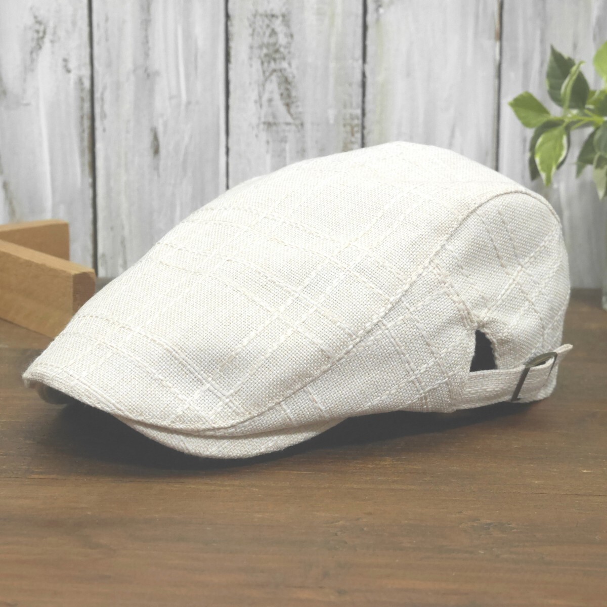 全国一律送料450円 ステッチチェック リネン風 麻 ハンチング ホワイト シンプル サイズ調整可 オールシーズンOK 男女兼用