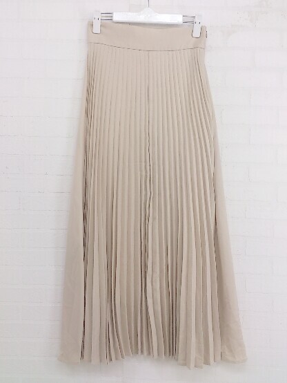 ◇ mystic ミスティック フロントプリーツ ロング フレア スカート サイズF ベージュ レディース P