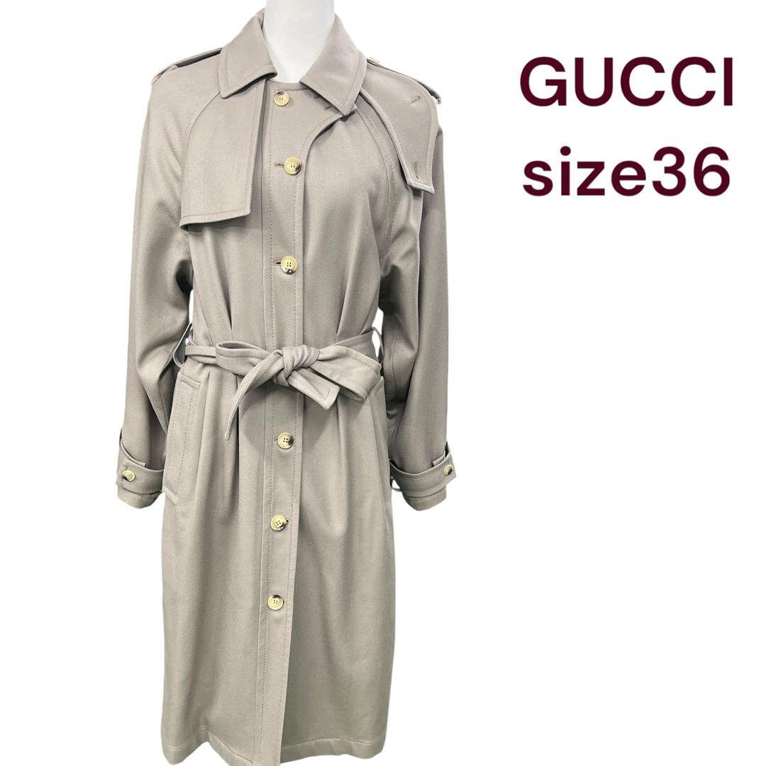 美品 GUCCI 上質ウール シンプル トレンチ コート 36 M4I700