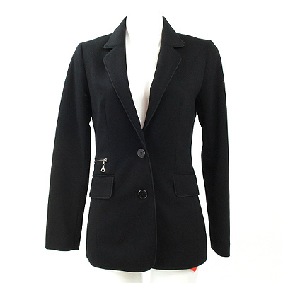 | 一枚あると便利なアイテム☆素敵なテーラードジャケット♪ ジャージ素材のジャケットは動きやすく肌寒い季節の変わり目に重宝しますね。 フロントのポケットはジップタイプ以外は飾り仕立てになっています。 セットでラインストーンのタイがついていますが、ジャケットの付属品ではありません。 ジャケットにあわせても、お手持ちのお洋服にもつけていただけます♪ 袖口裏生地に薄汚れが見られますがその他の状態は良好です。 着丈約66㎝ 袖丈約58㎝ 肩幅約35㎝ バスト約78㎝ 【サイズ】:(1) 【素 材】:(ポリエステル73%・レーヨン21%・ポリウレタン6%・ポリエステル100%) 【 色 】:(黒) 【程 度】:(B) 12140319-015 475 003 | ||||