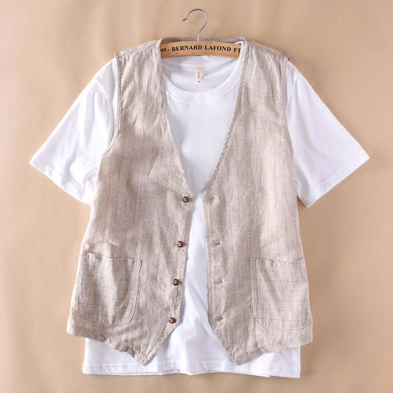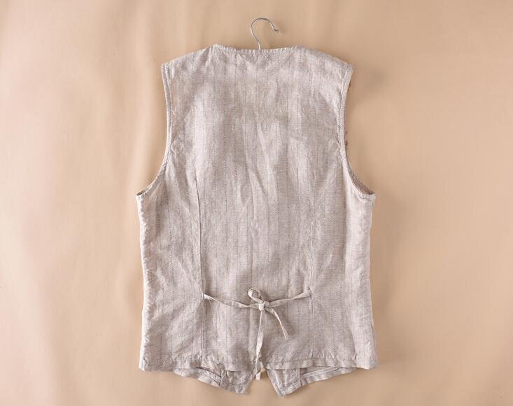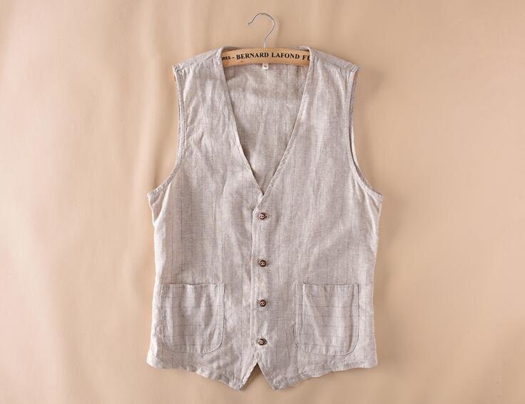 新品★メンズ ベスト ジレベスト リネン スーツベスト ビジネス フォーマル 縞柄 大きいサイズ 薄手 通勤 紳士服 カーキ L