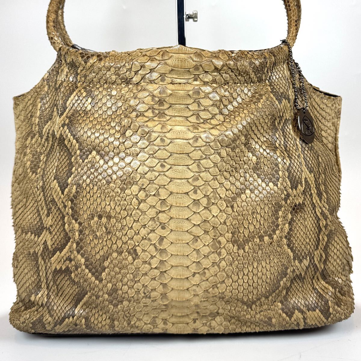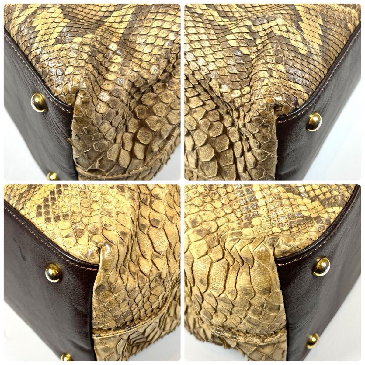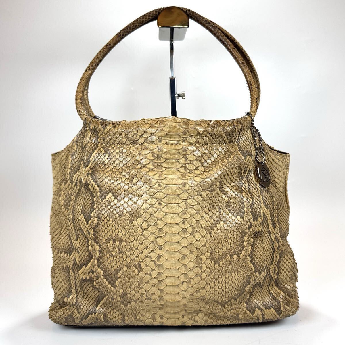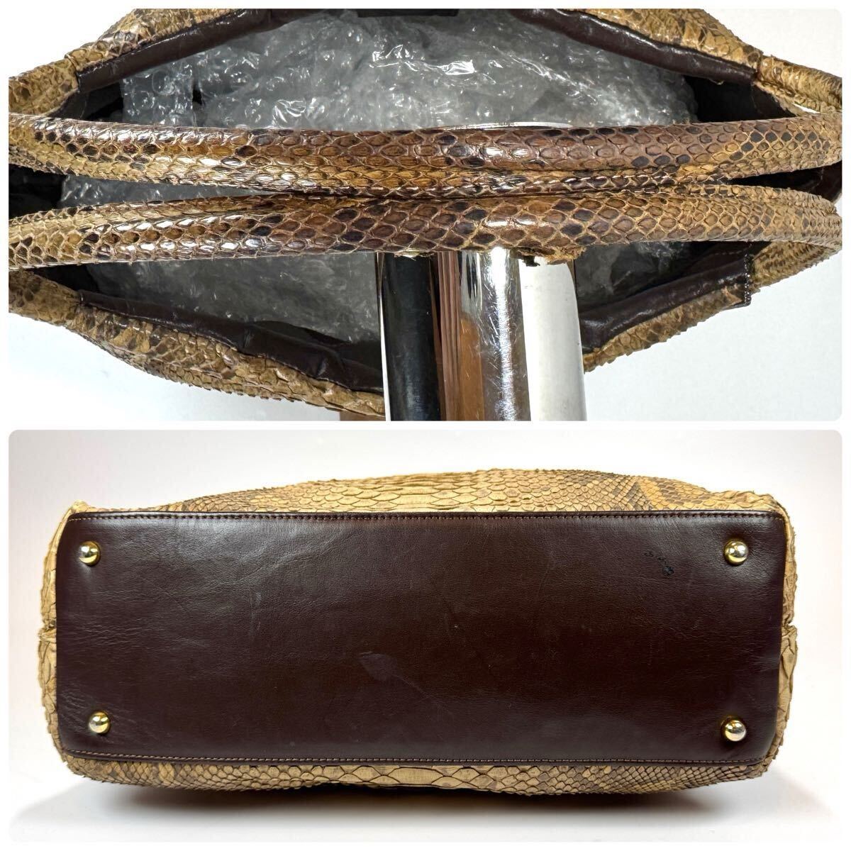 美品 JRA 認定 パイソン レザー トートバッグ ハンドバッグ 蛇革 ヘビ革 エキゾチック 茶 ブラウン ベージュ 日本製