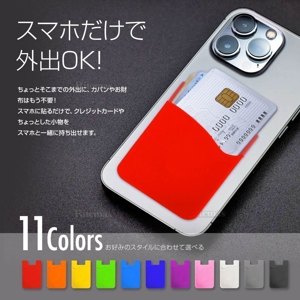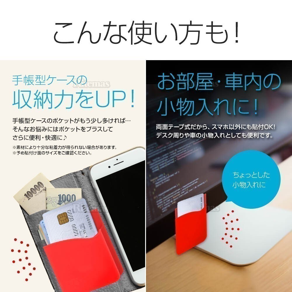 スマホ カードケース カードホルダー 貼り付け シリコン スマホポケット 背面ポケット カード収納 赤色 レッド