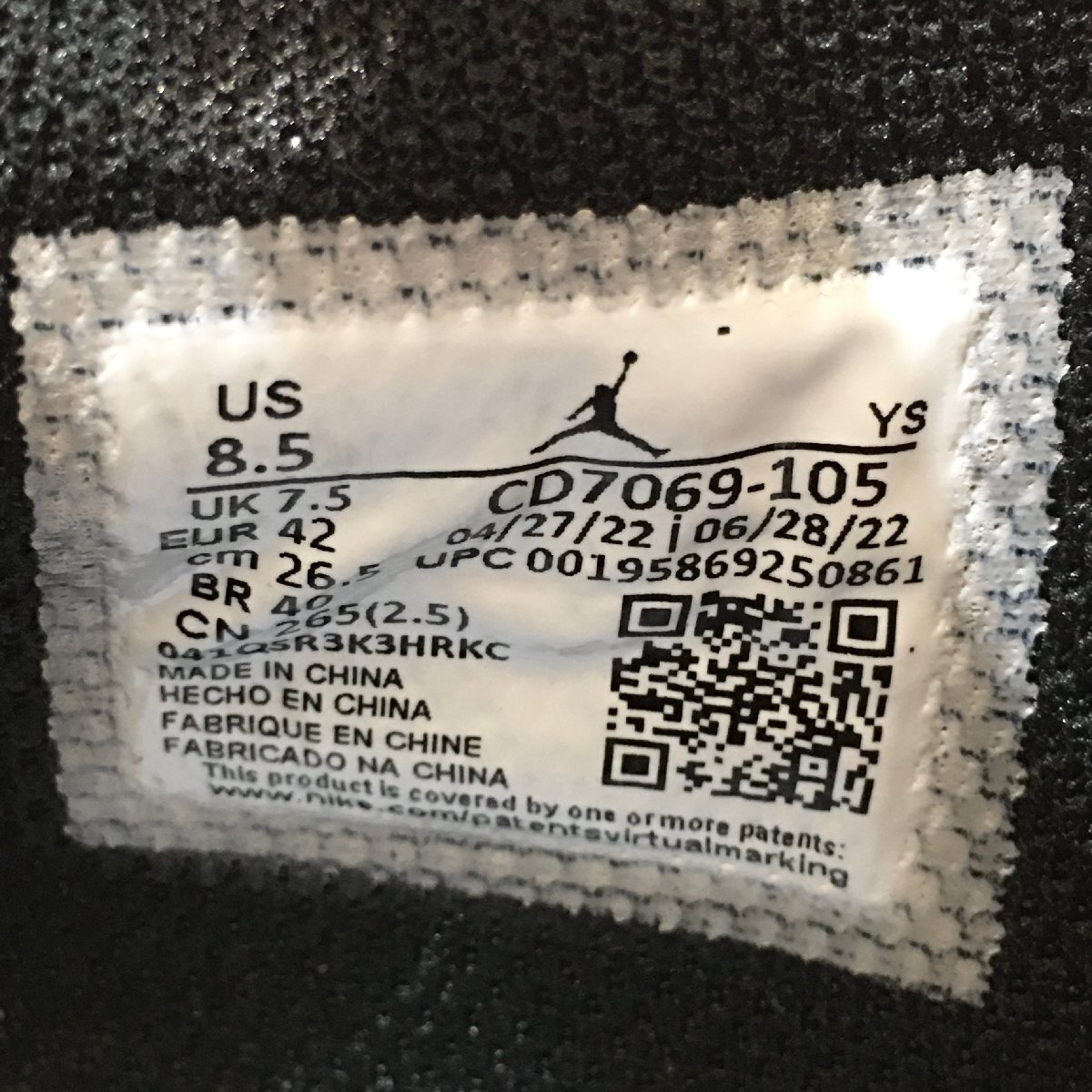 ・アッパーの状態:未使用状態ですが、経年変化、劣化による黄変、変色がロゴ回りにあり左右で色味が少々異なります。