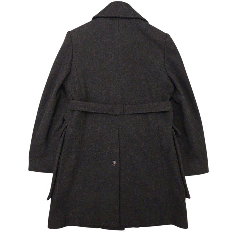 エルメス HERMES ヴィンテージ 90s ベルテッド ウールコート シングル ロゴボタン ロング 38 黒 ブラック /VU□ 0429 レディース