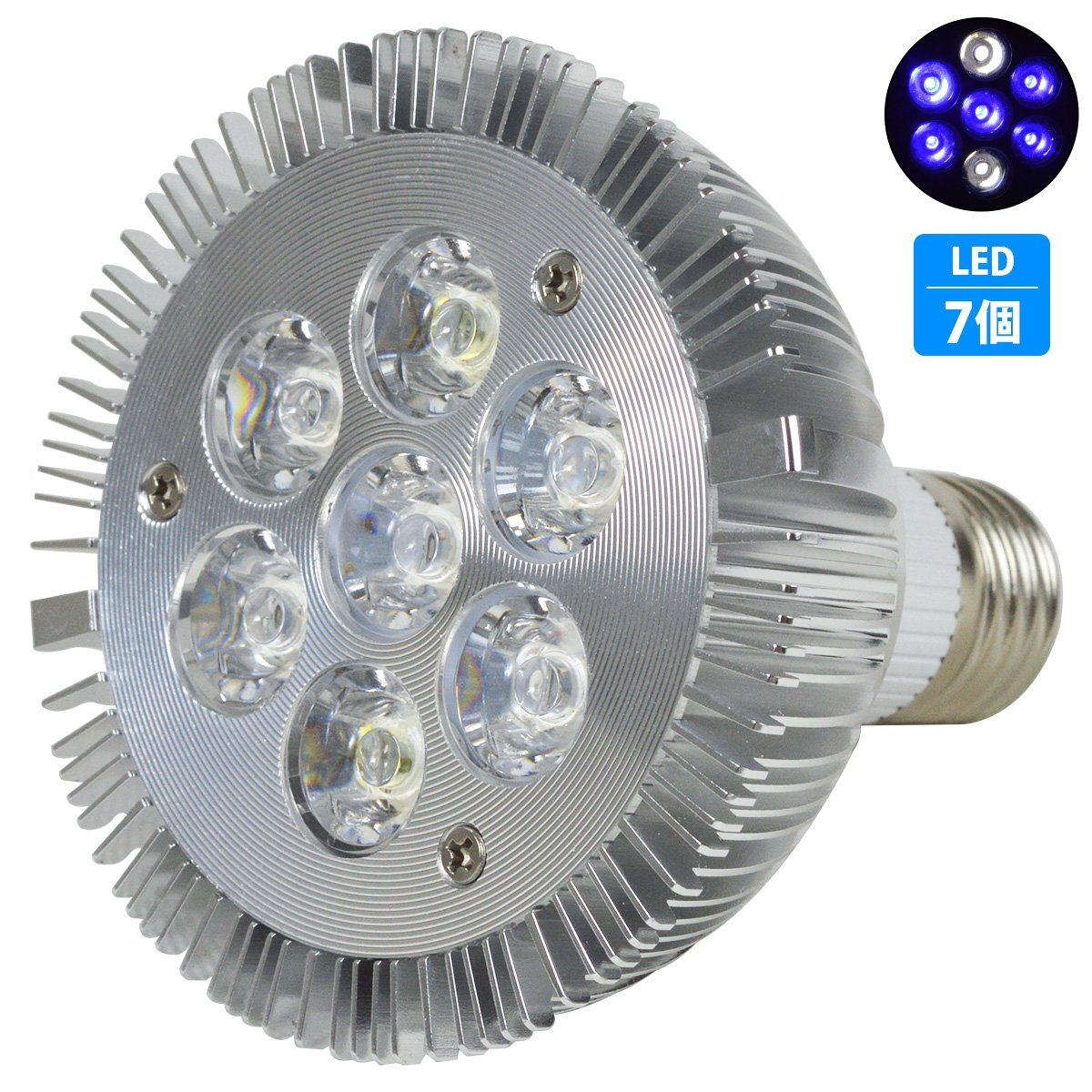 【新品即納】 7LED 青5白2 E26 口金 水槽 用 スポット ライト 21W 電球 アクアリウム 照明 交換 植物育成 水草 サンゴ 熱帯魚 観賞魚 LED