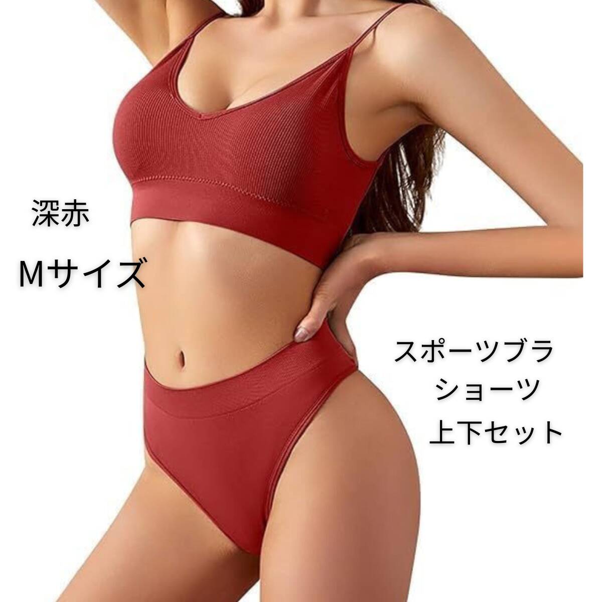 【新品】スポーツブラ ショーツ 上下セット フィットネス スポーツウェア ヨガウェア カップ付き 吸汗速乾 ノンワイヤー 深赤 Mサイズ