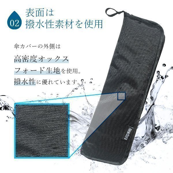 傘カバーの外側は高密度オックスフォード生地を使っており、撥水性に優れております。