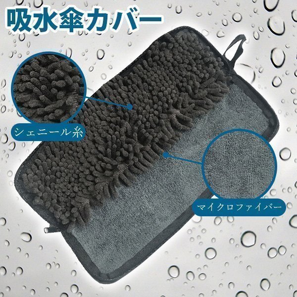 濡れた傘の水分を2面から包み込み、水分をさっと吸水します。