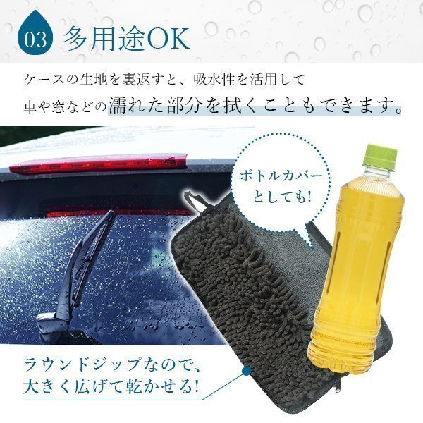 ケースの生地を裏返すと、吸水性を活用して車や窓などの濡れた部分を拭くこともできます。