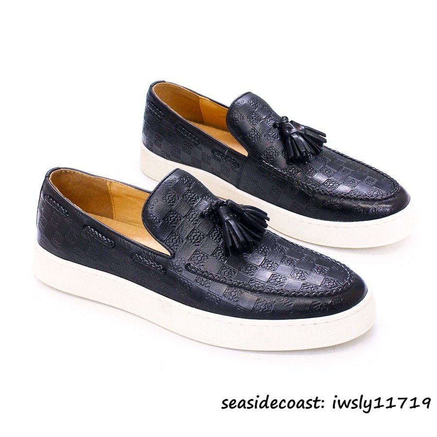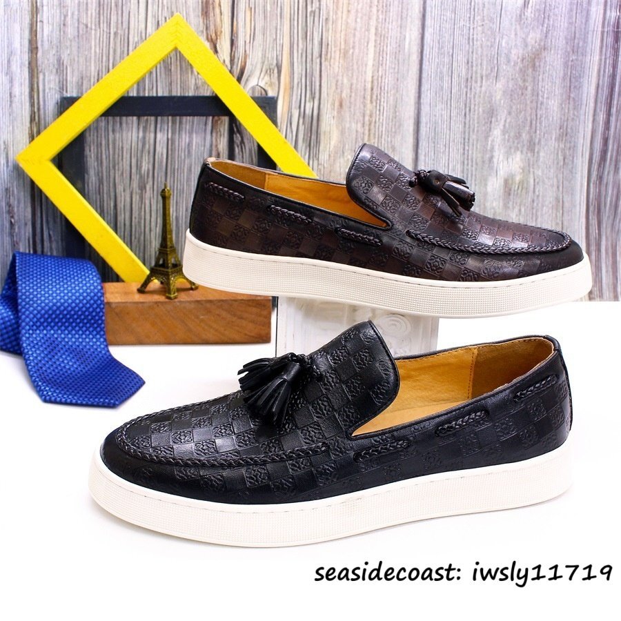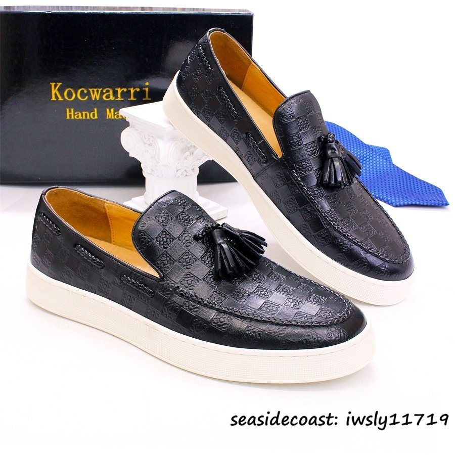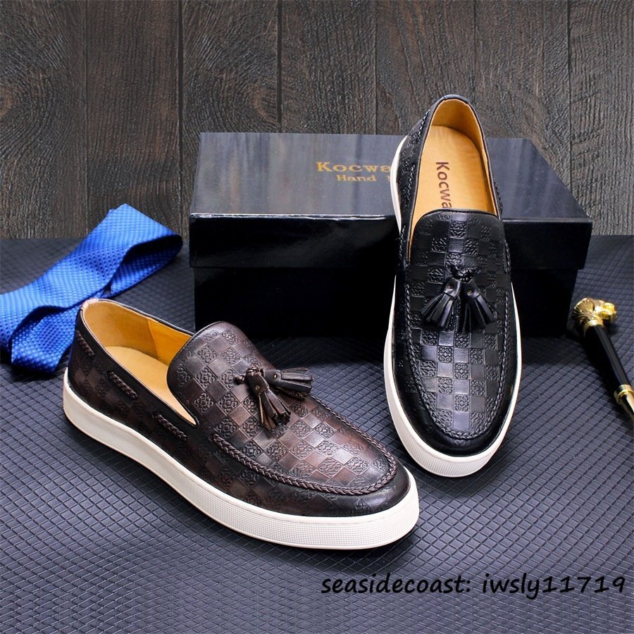 定価8万◆タッセルローファー スリッポン メンズ 職人手作り ビジネスシューズ レザーシューズ 紳士靴 高級牛革 革靴 本革 ブラック 26.5cm