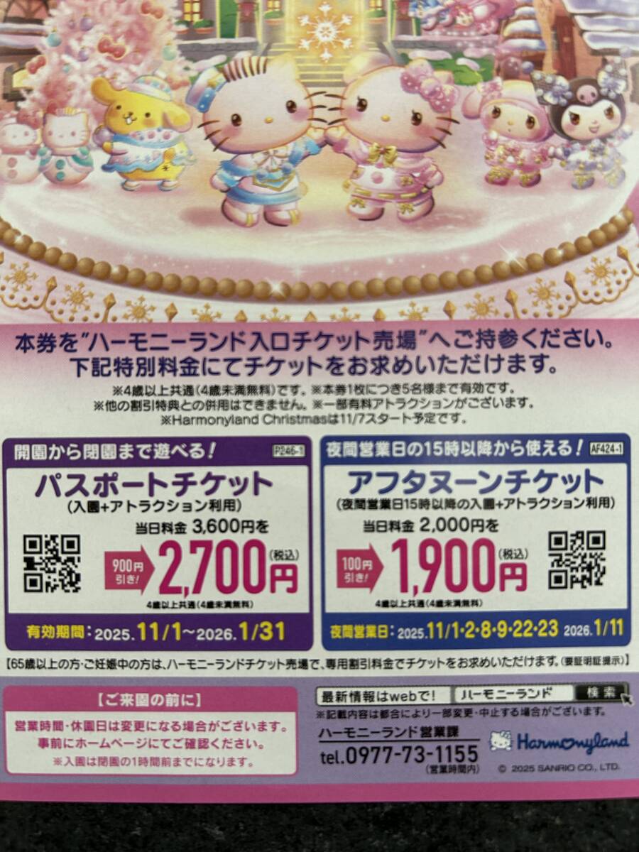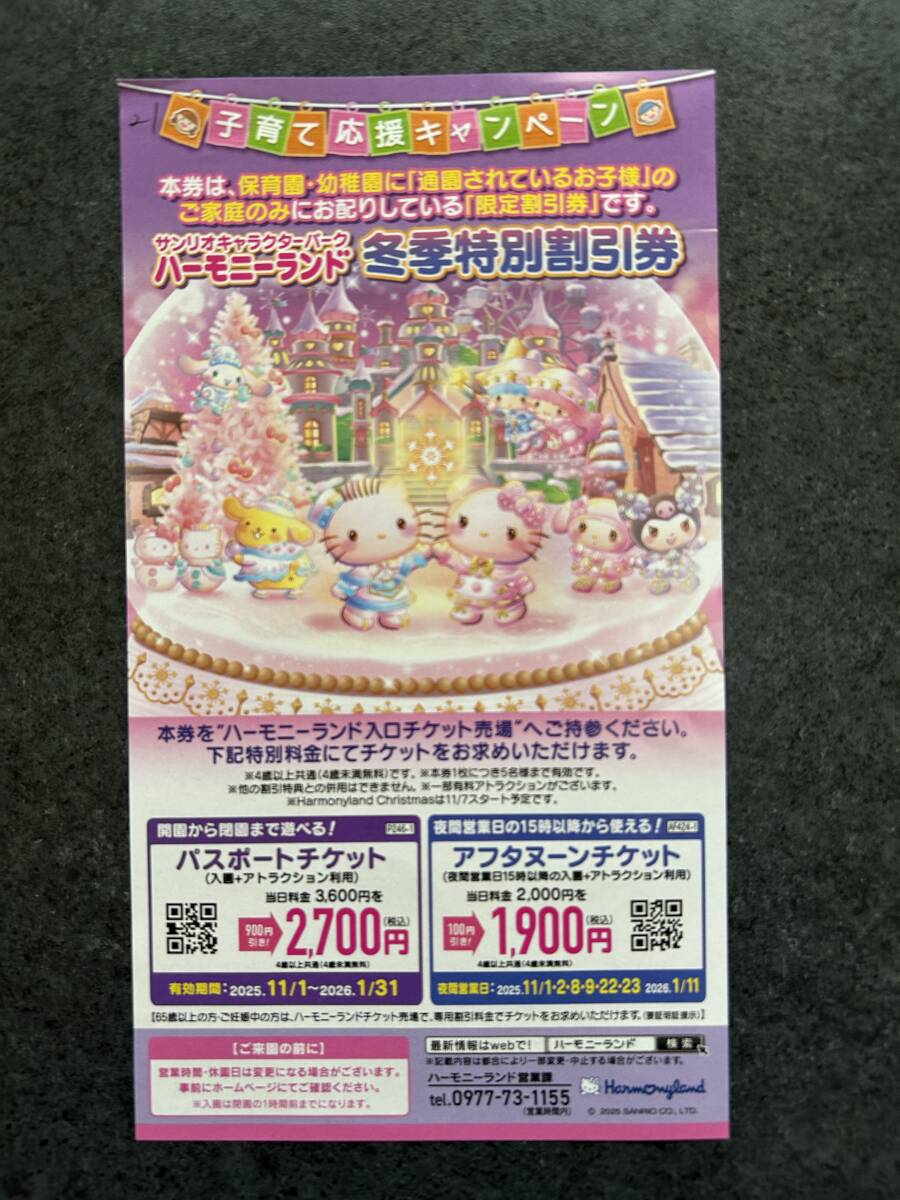 ☆送料無料☆ ハーモニーランド サンリオ チケット 割引券 非売品