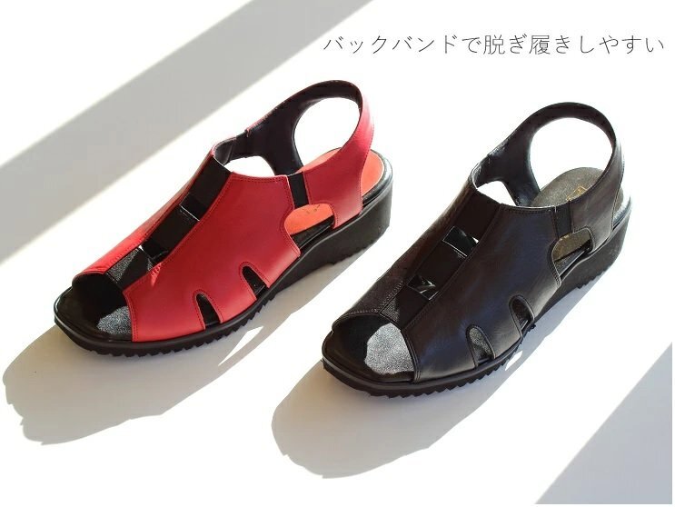 | フィズリーン、軽量バックバンドサンダル♪ シンプルでありながらどこかモードな雰囲気。 甲部分、両サイドがゴムなので、幅広さんや甲高さんにもオススメの1足です! 4E設計でゆとりよく履ける。 職人が丁寧に作った安心のメイドインジャパン☆ ●素足でも靴下でもお好みで履いていただけます。 ●ソフトレザーを使用しており足あたりが優しいので履きやすい。 ●柔らかいクッション、4.5cmのほどよいヒールで快適な履き心地。 ●4E相当の広めな作りです。 ●肌寒い時期は靴下を合わせてカジュアルなコーディネートもお楽しみ頂けます。 ※こちらは革製品の為、性質上新品であっても多少のシワや細かなキズなどがある場合がございます。 元よりシワ加工されたデザインもございます。 恐れ入りますがご理解、ご了承のほどよろしくお願い申し上げます。 《スタッフが試着してみました♪》 ■スタッフN■ 普段サイズ...スニーカー24.5cm(コンバース、NB、ナイキetc)、パンプスLLサイズ、サンダルなど素足で着用の靴は24.0~24.5cm 幅広4E/甲高/足の実寸約23.8cm 〇24.0cm素足で試着 足全体の当たりが柔らかく、幅広甲高の足でも痛くないがゆとりはあまり無い。 つま先は数ミリ余りました。 靴下を着用するとゆとりが無く少し窮屈感がありました。 革なので足に馴染むとよいサイズ感になるかもしれません。 幅や甲があまりない方はこちらでも良さそうです。 〇24.5cm素足で試着 24.0cm同様、足全体の当たりが柔らかく、幅広甲高の足でも痛くない。 つま先は1cmほど余りました。 こちらはほどよいゆとりがあります。 靴下を着用しても窮屈感はありません。 購入するなら24.5cmを選びます。 ※サイズ感には個人差があり一概には言えませんが、ご参考くださいませ。 【FIZZ REEN (フィズリーン)】 FIZZ REEN (フィズリーン)は、「華麗な遊び心」をテーマに展開。 エレガント、カジュアル、フェミニンというジャンルから 、年齢にとらわれない幅広い要素を取り揃えています。 快適で履きやすいことから多くの女性に愛され、根強いファンを持つ信頼されている国産ブランドです。 | |